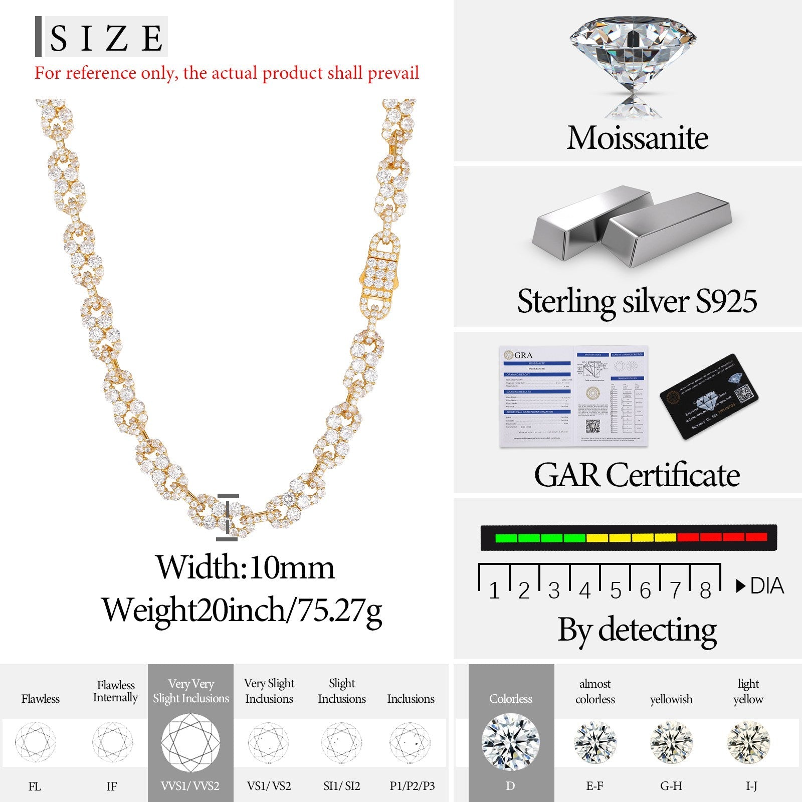 10mm S925 1 Row Moissanite Infinity Cuban Link Chain