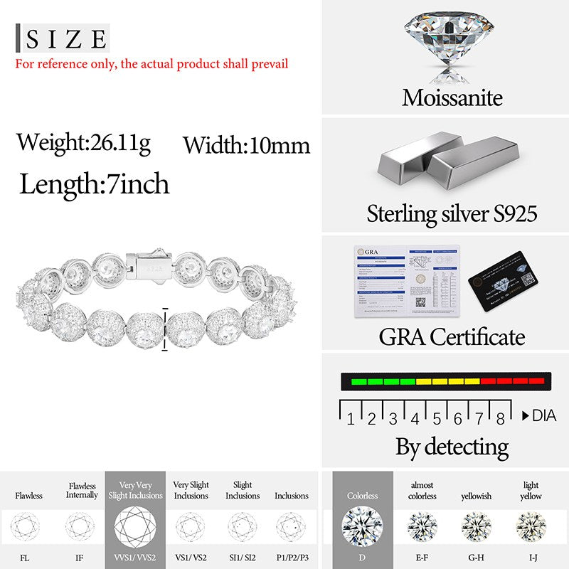 10mm S925 Moissanite Cluster Hemisphere Tennis Bracelet