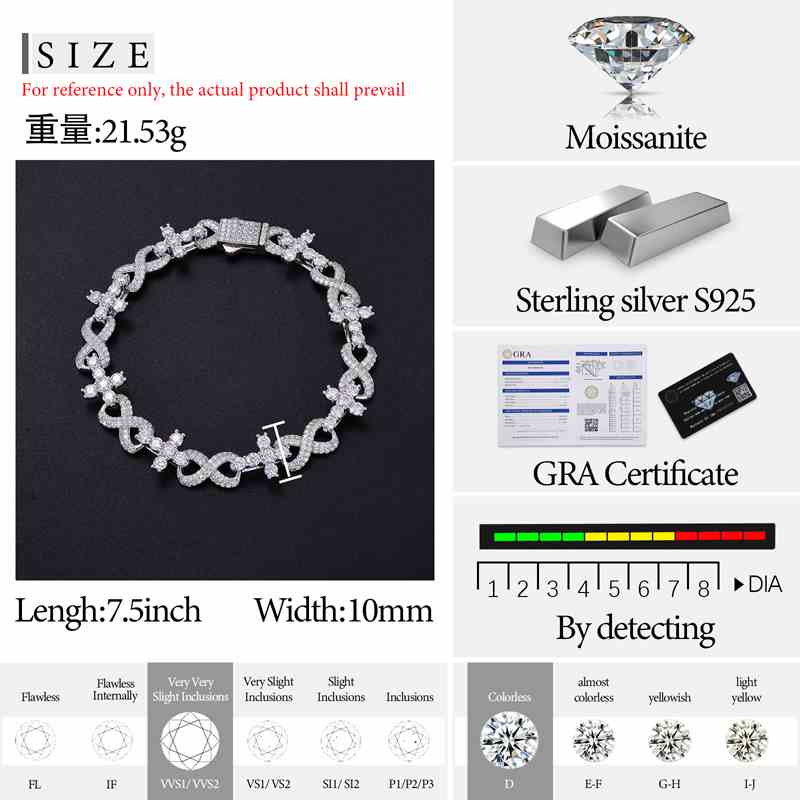 10mm S925 Moissanite Infinity Cross Link Bracelet