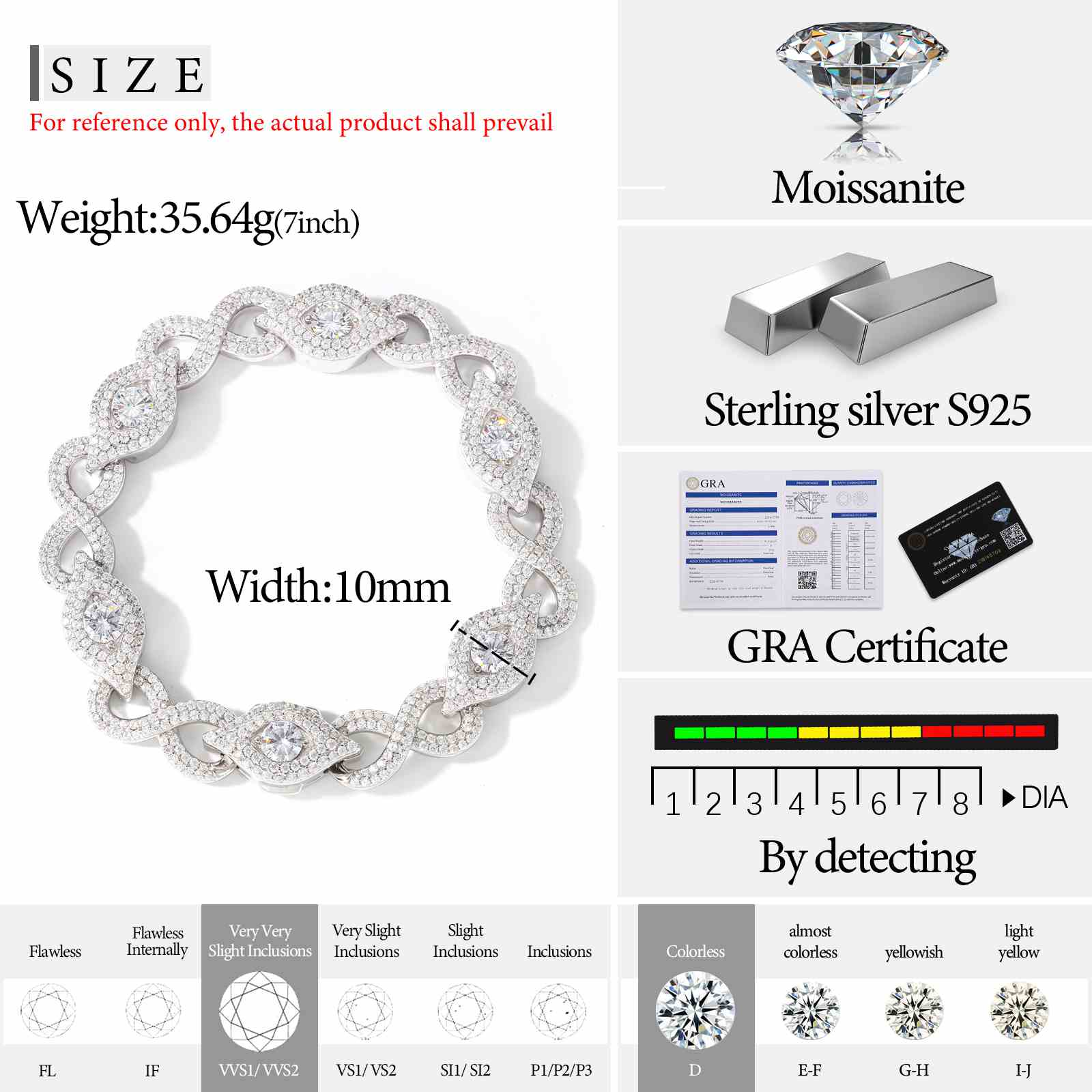 Command attention with this 10mm S925 sterling silver bracelet, where street-edge meets timeless symbolism. D Color VVS1 Moissanite stones are... Read more