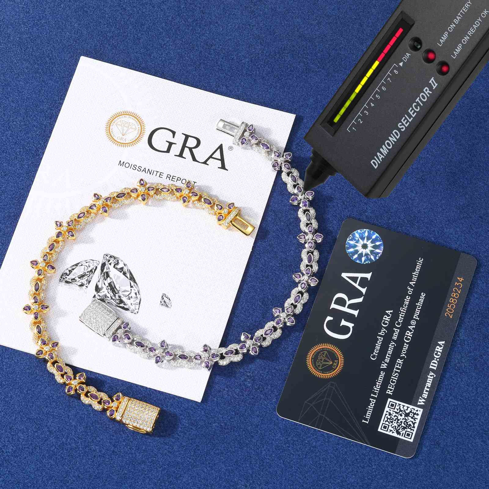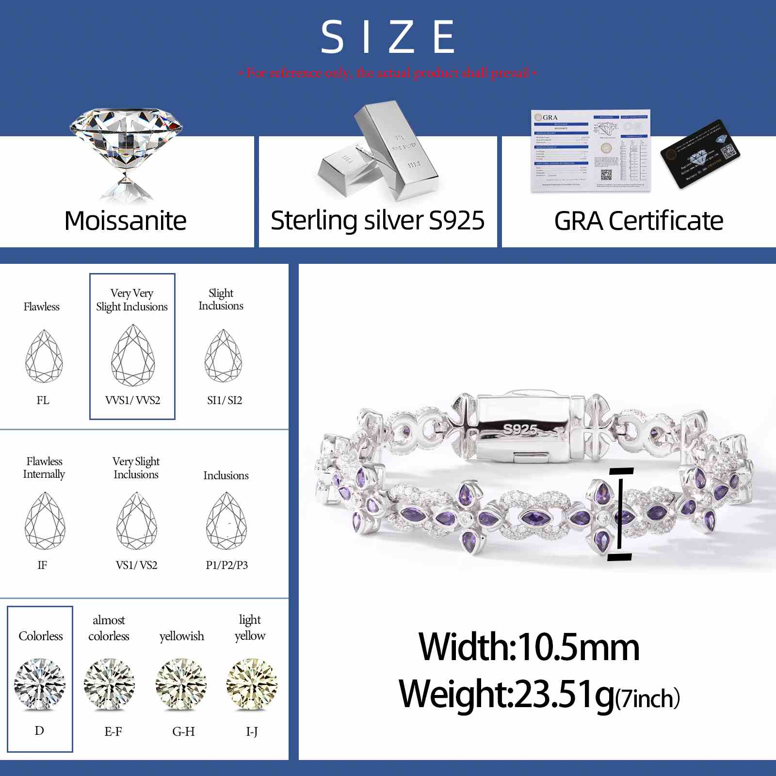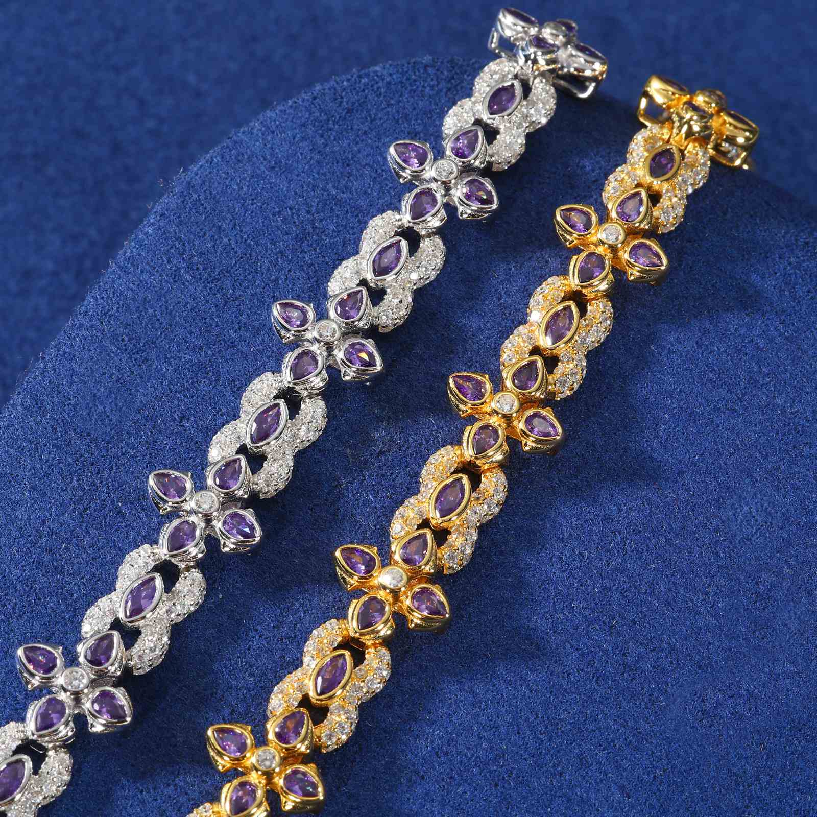 10mm S925 Moissanite Purple Four-leaf Clover Infinity Bracelet