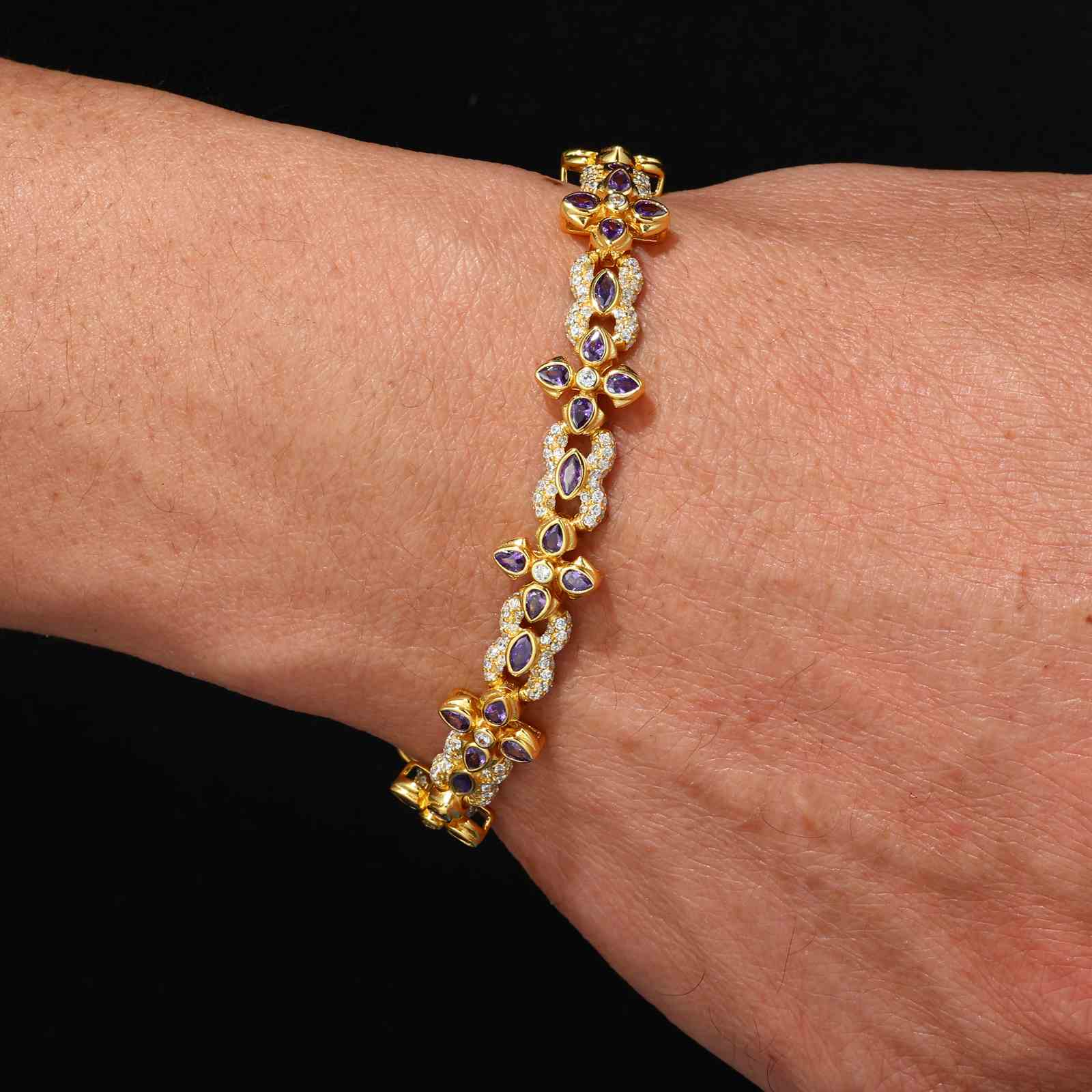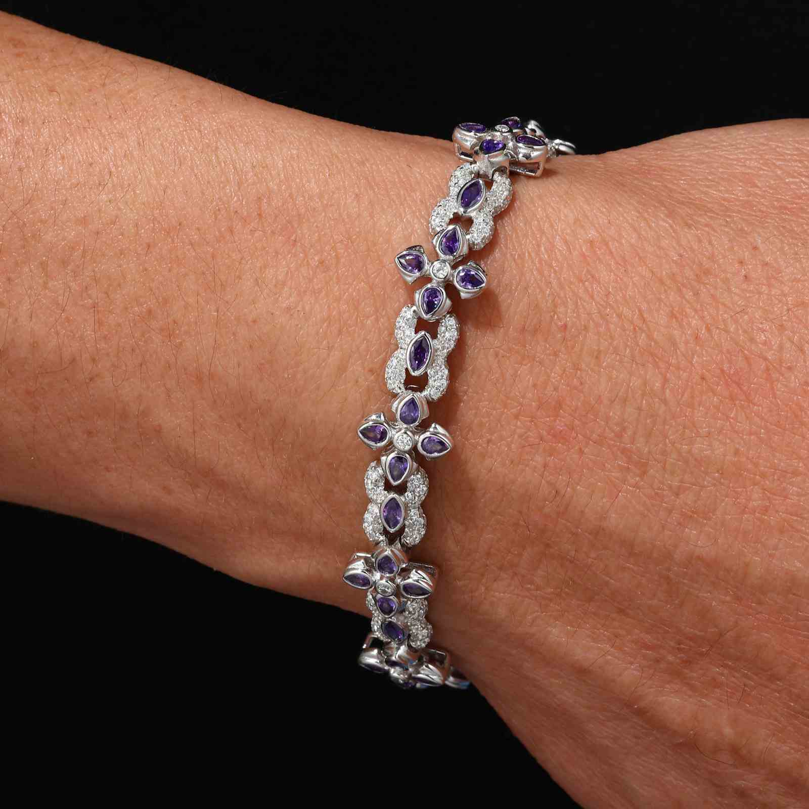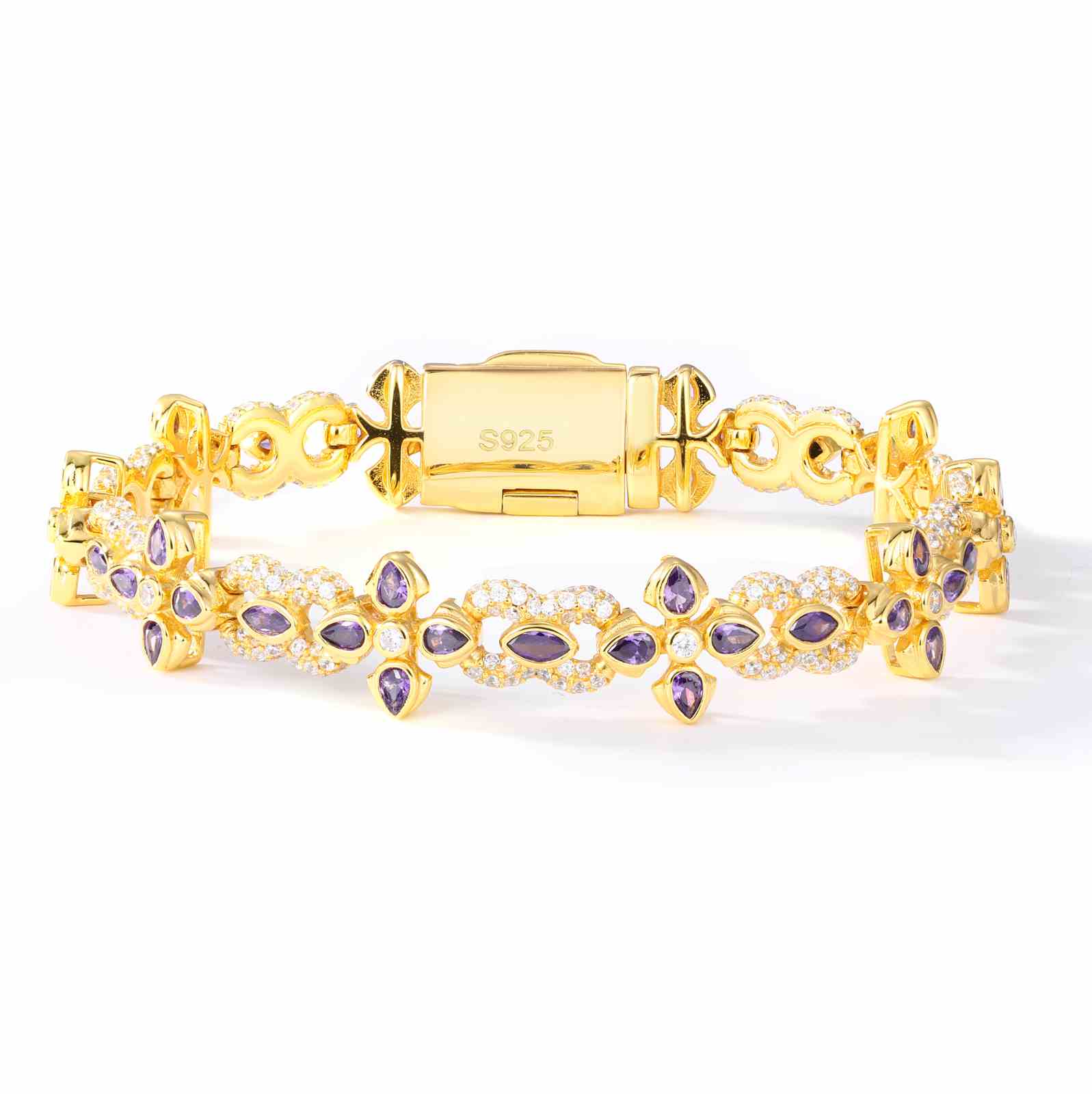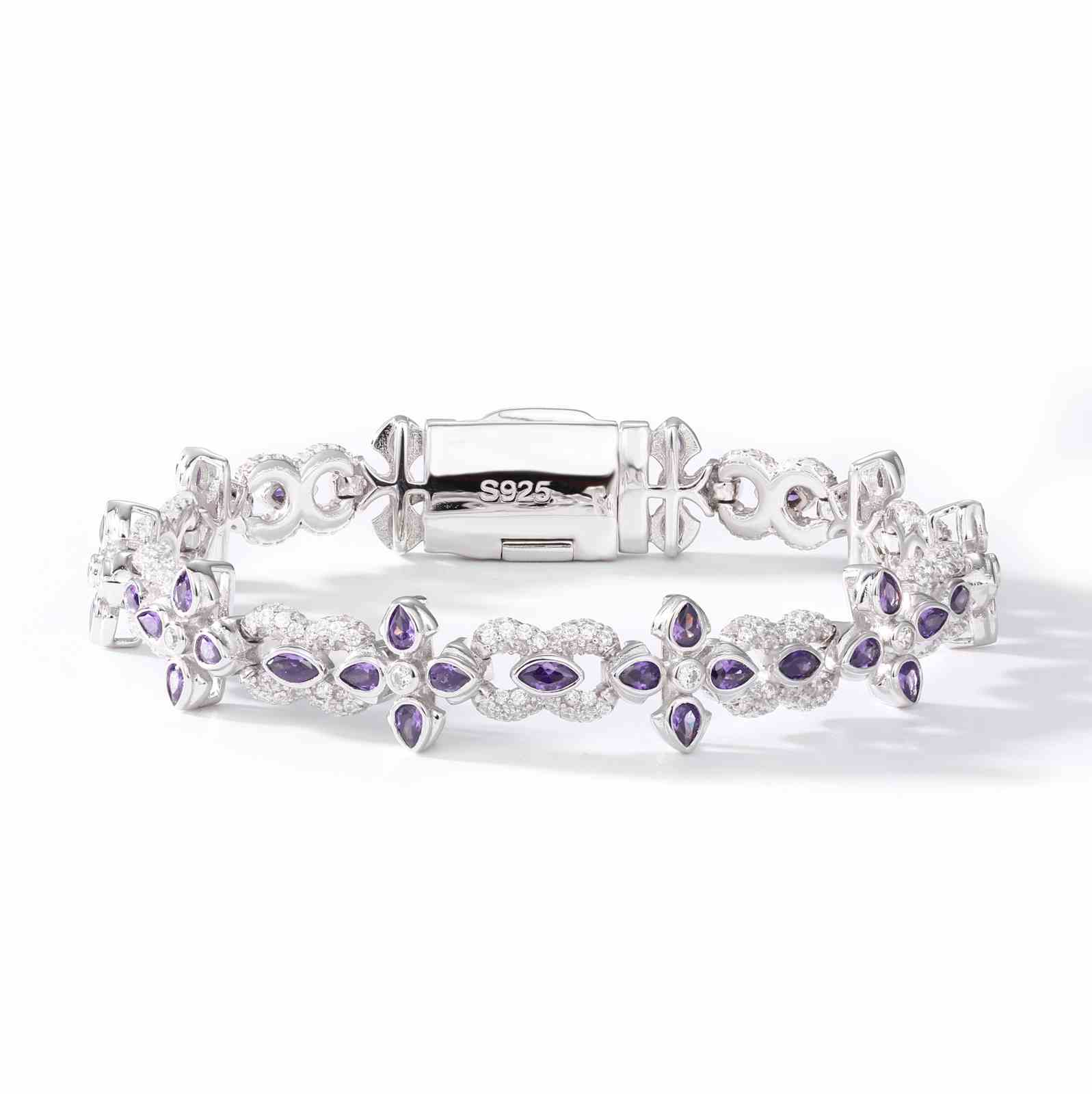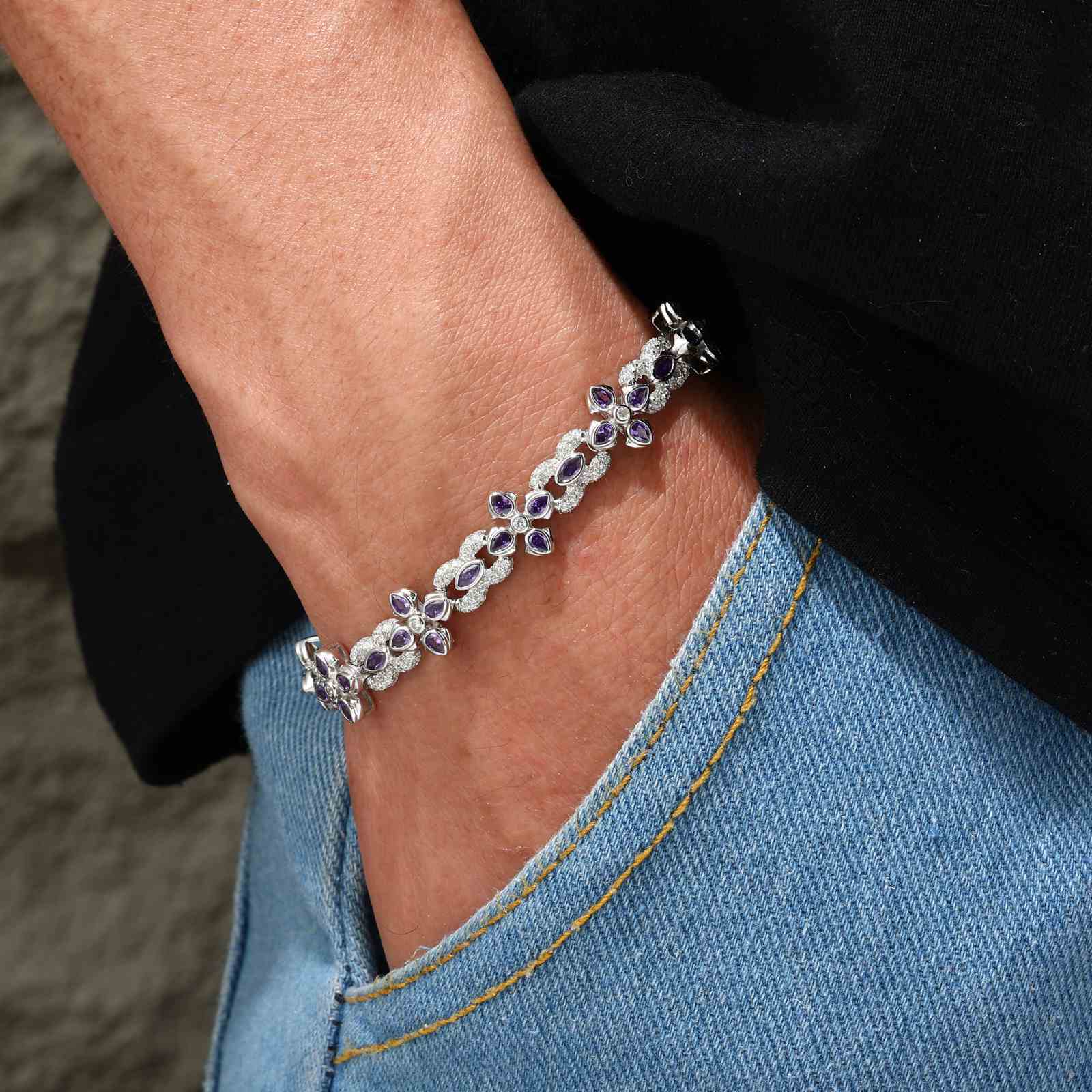Masterfully crafted from S925 sterling silver, this 10mm bracelet fuses luxury and bold design. Each purple four-leaf clover sparkles with... Read more