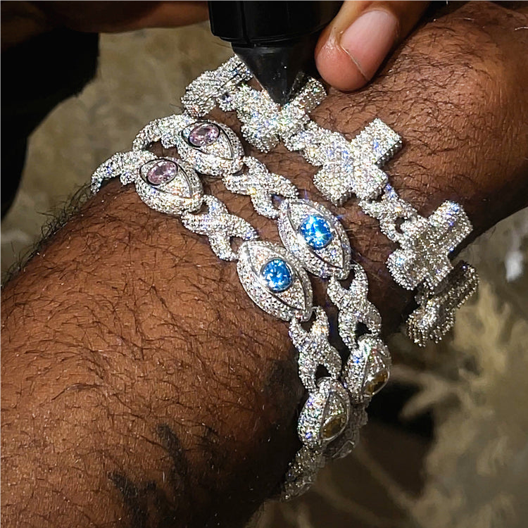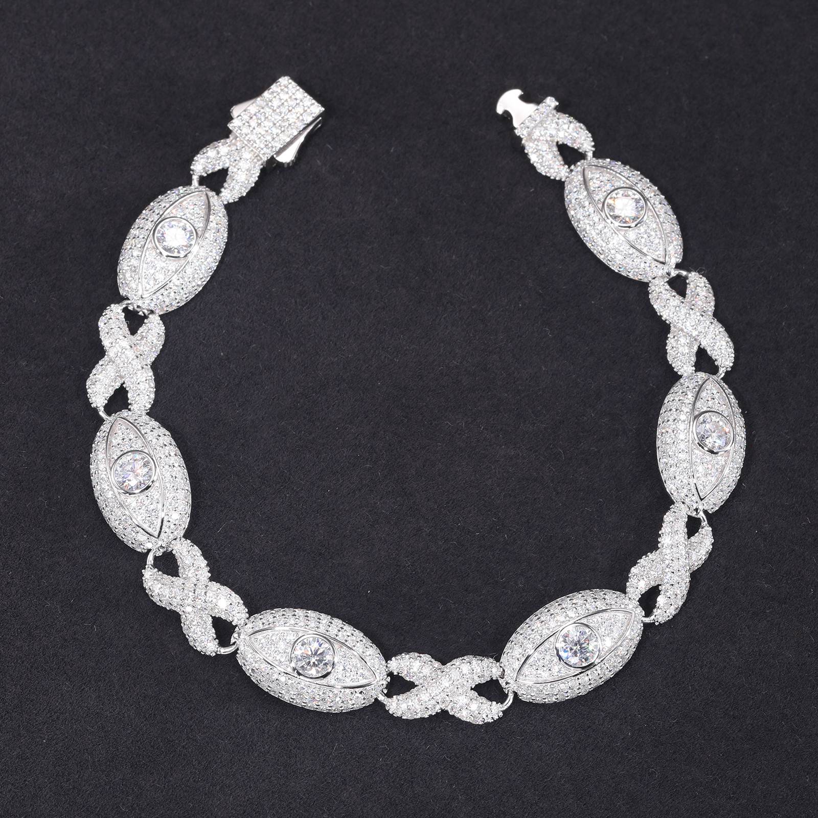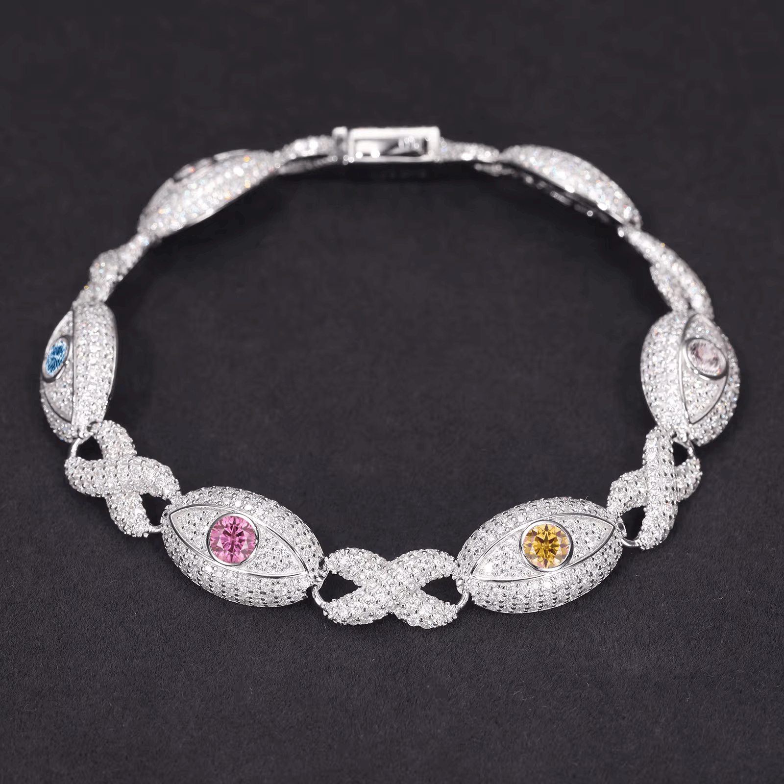 11mm S925 Moissanite Evil Eye Infinity Cuban Link Bracelet