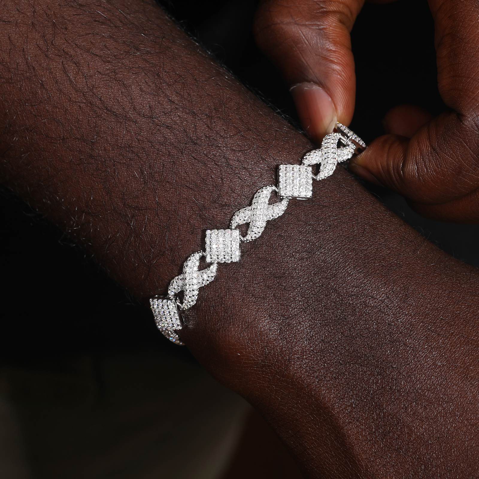 11mm S925 Moissanite Square Infinity Cuban Link Bracelet