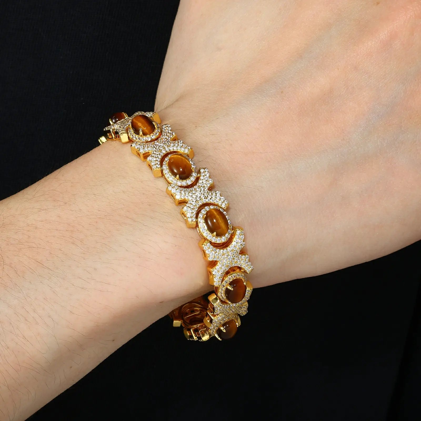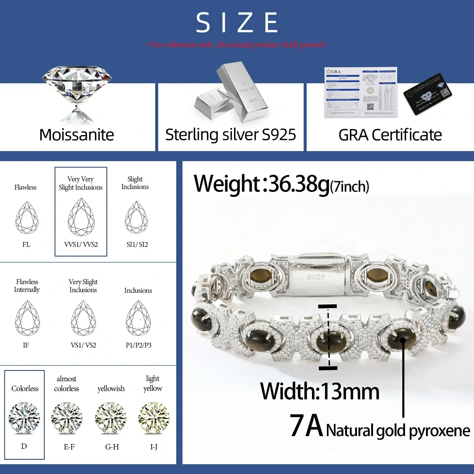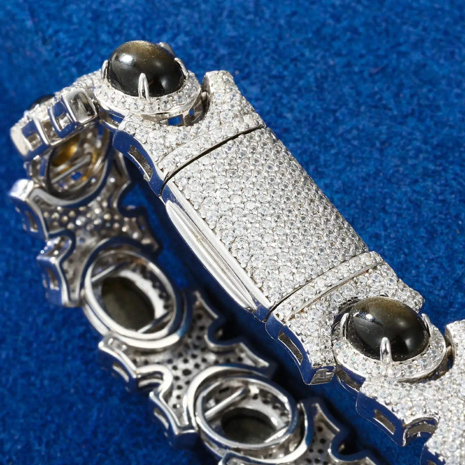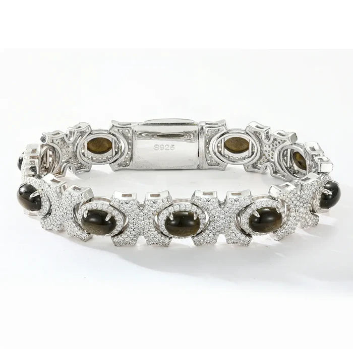 13mm S925 Moissanite Oval Natural Obsidian X Link Bracelet