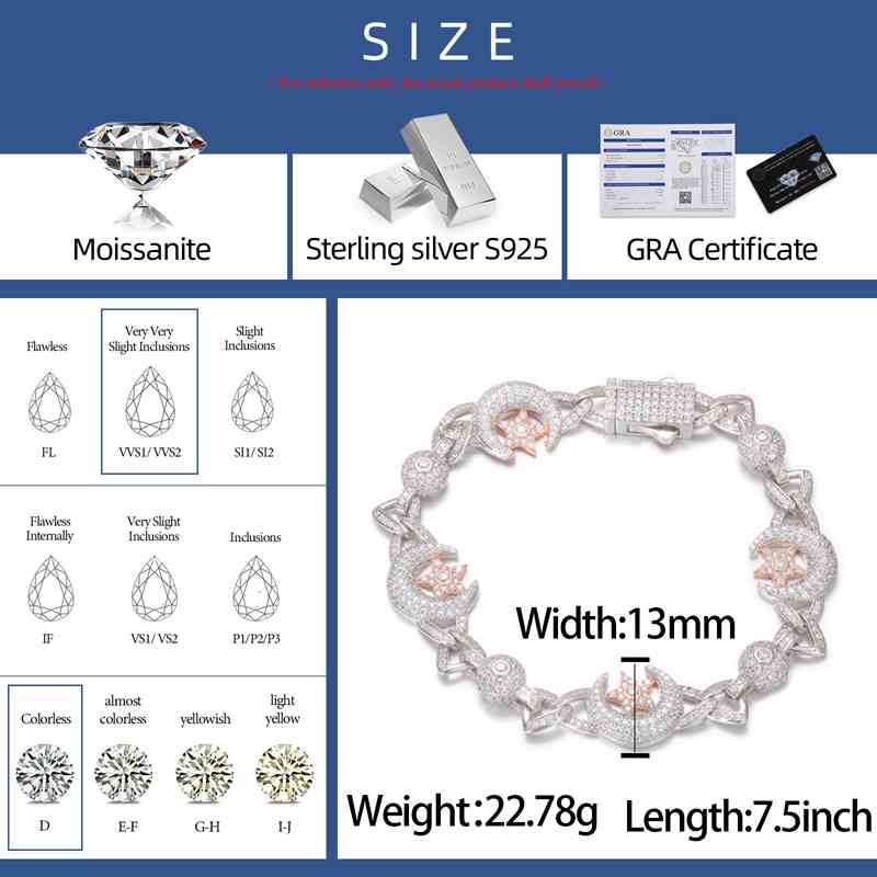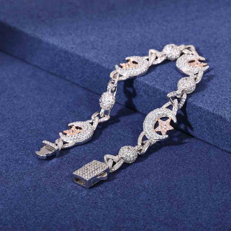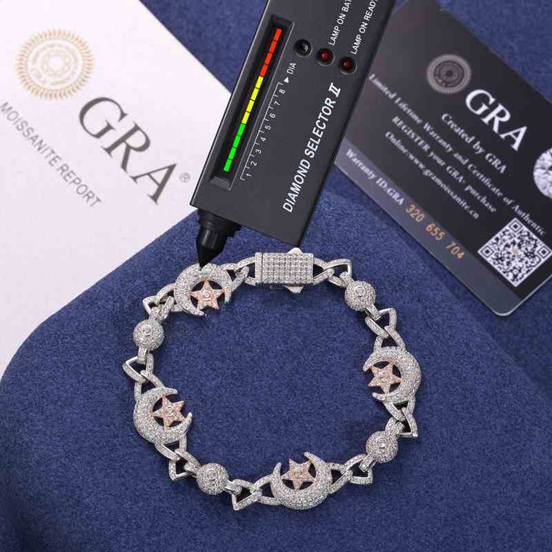 13mm S925 Moissanite Sun Moon Star Link Bracelet