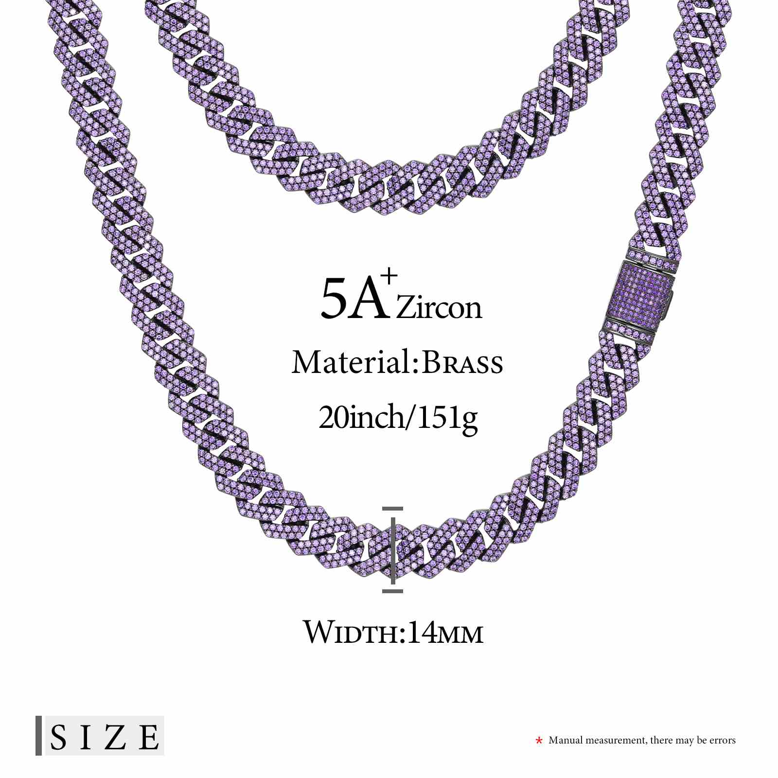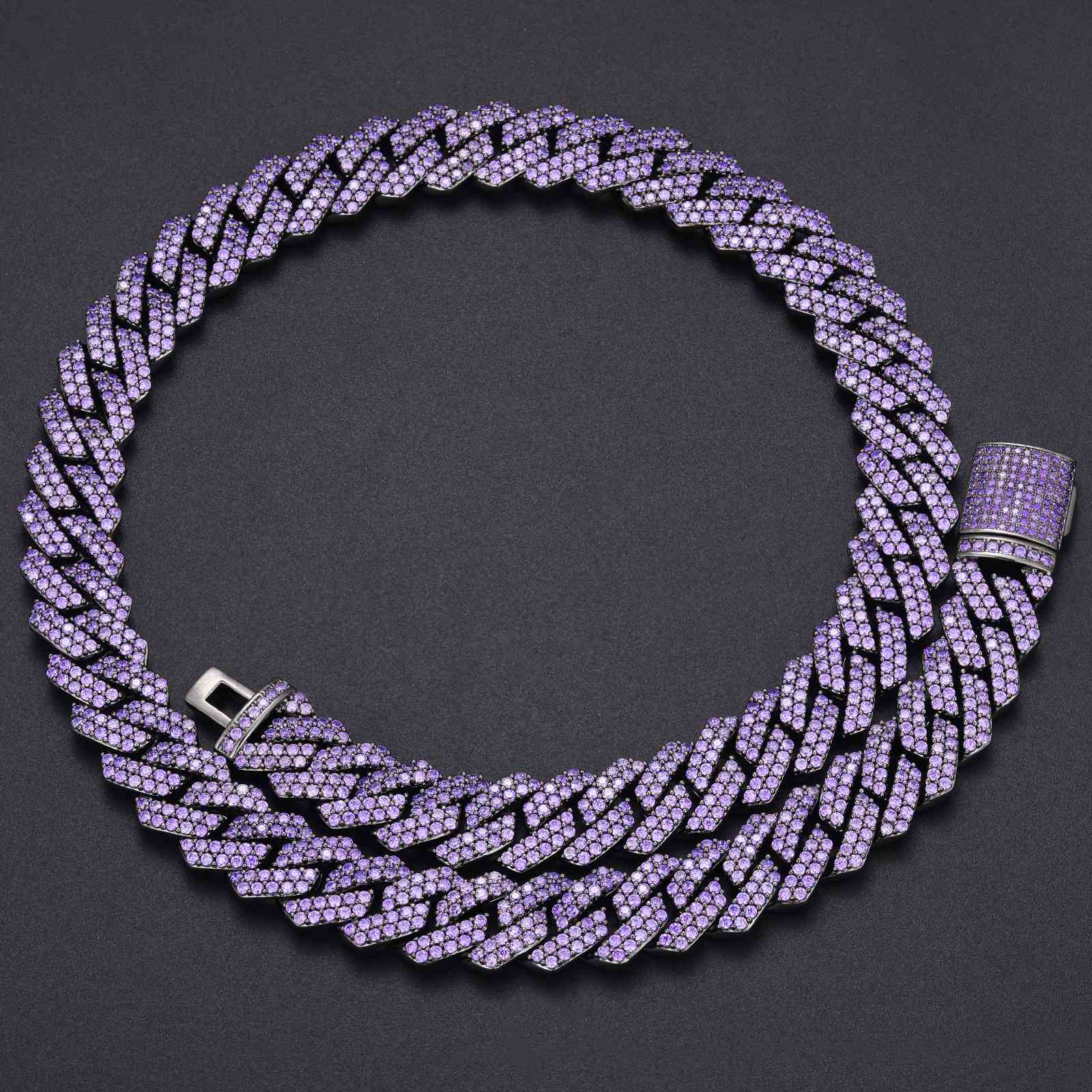 14mm 2 Rows Purple CZ Cuban Link Chain