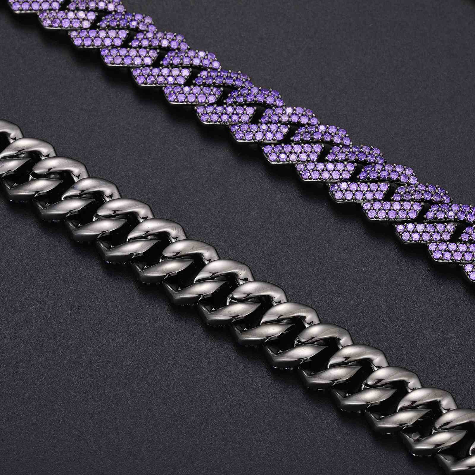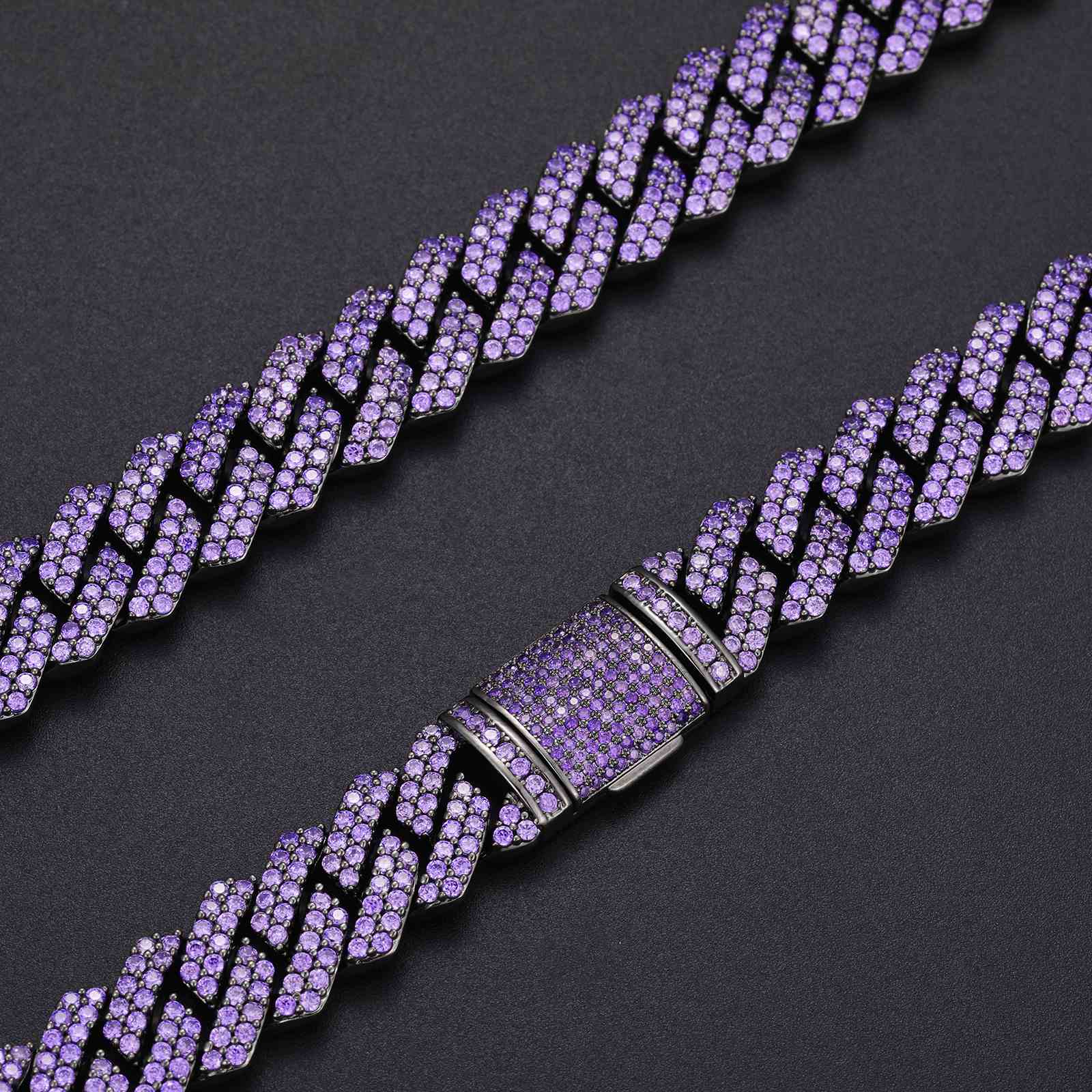 Dark luxury, electric energy.Two rows of AAAAA prong-set purple CZ stones blaze over classic Cuban links, all coated in striking... Read more
