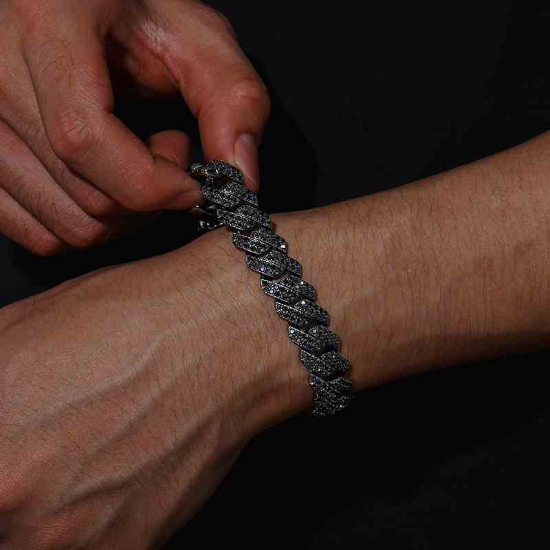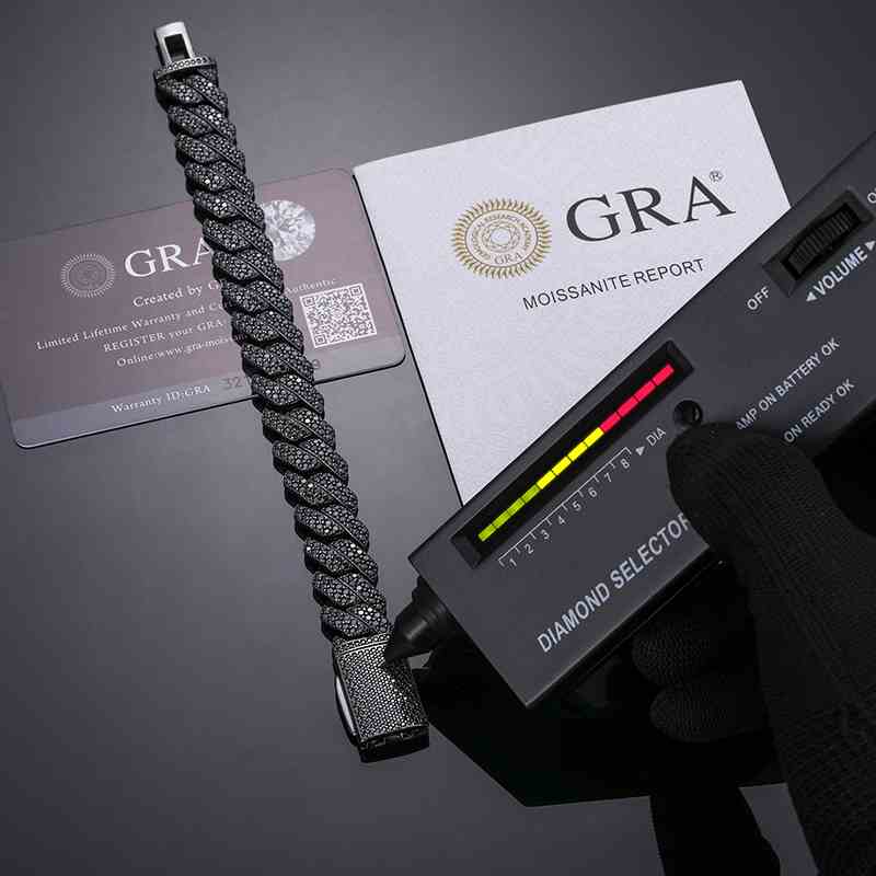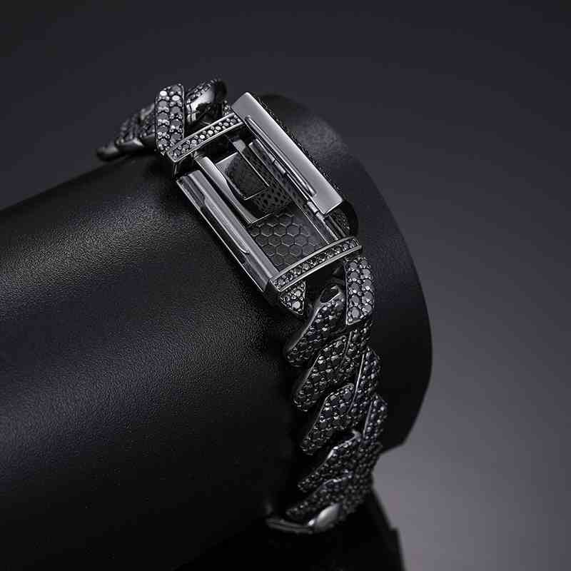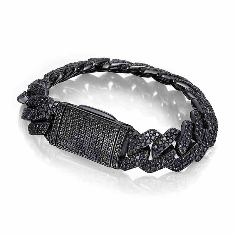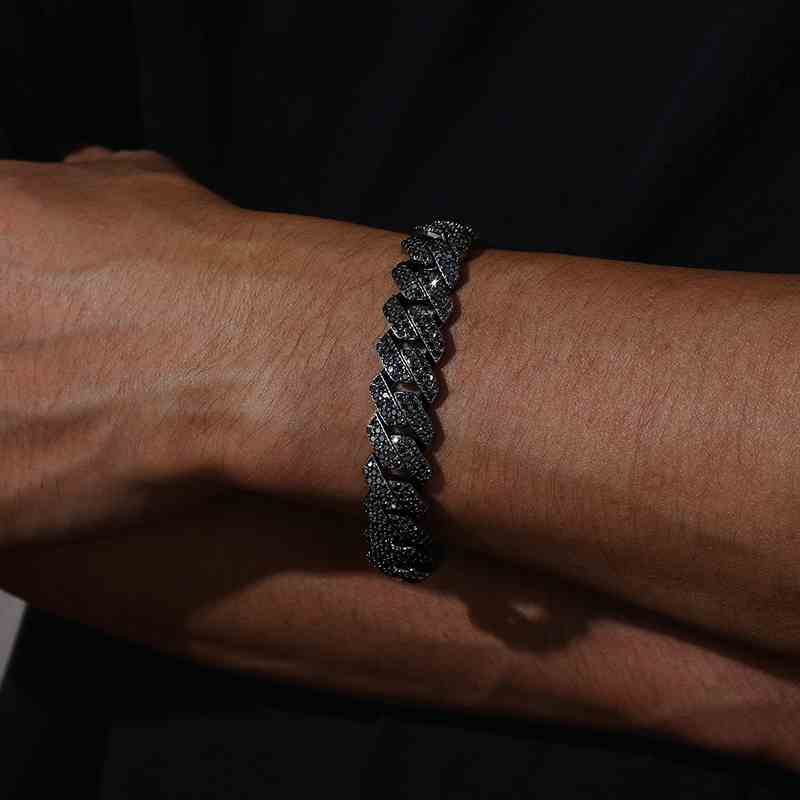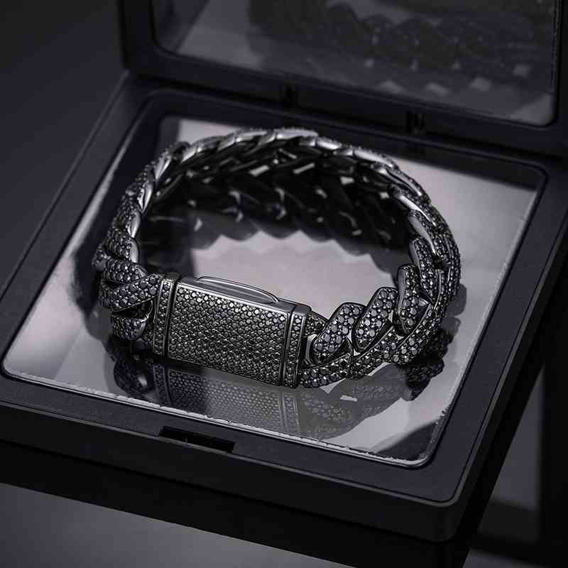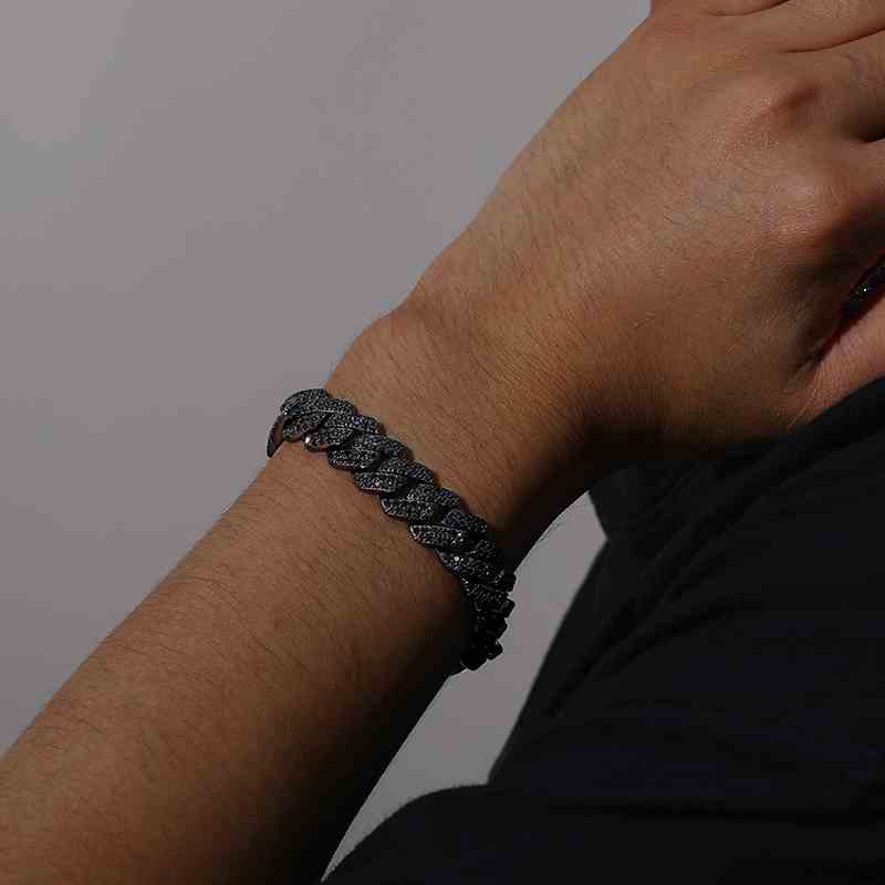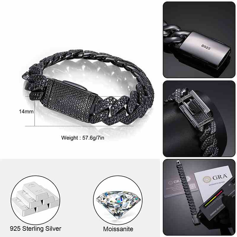 14mm S925 2 Rows Black Moissanite Cuban Link Bracelet in Black Gold