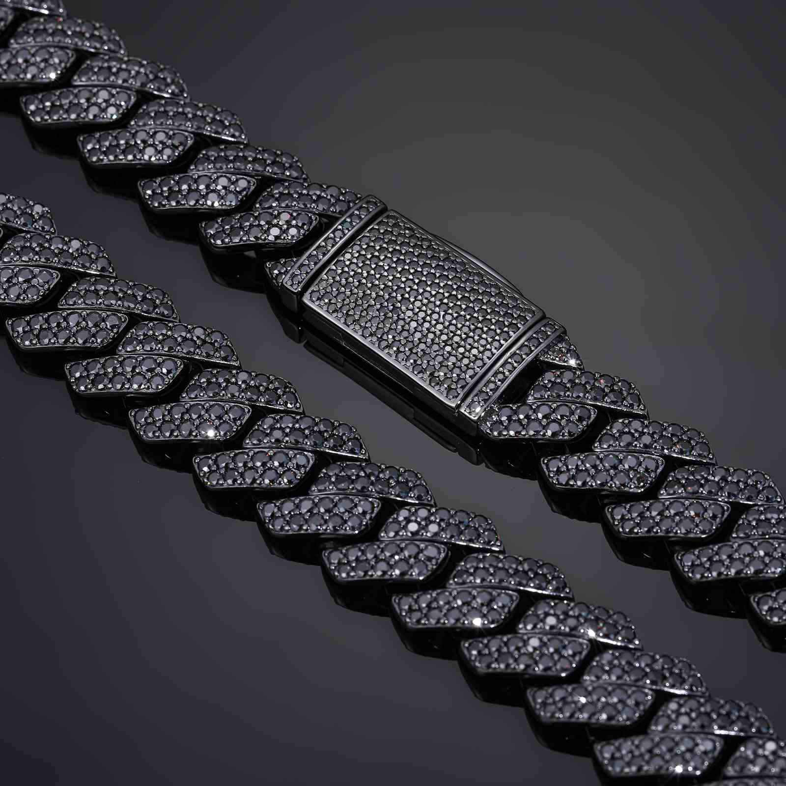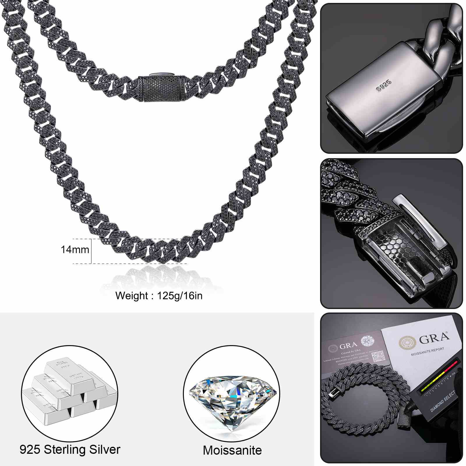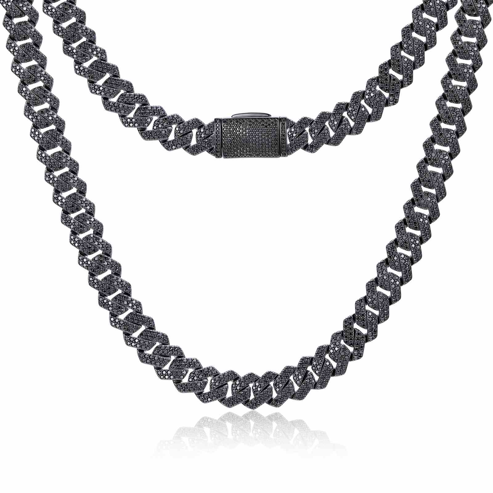 14mm S925 2 Rows Black Moissanite Cuban Link Chain
