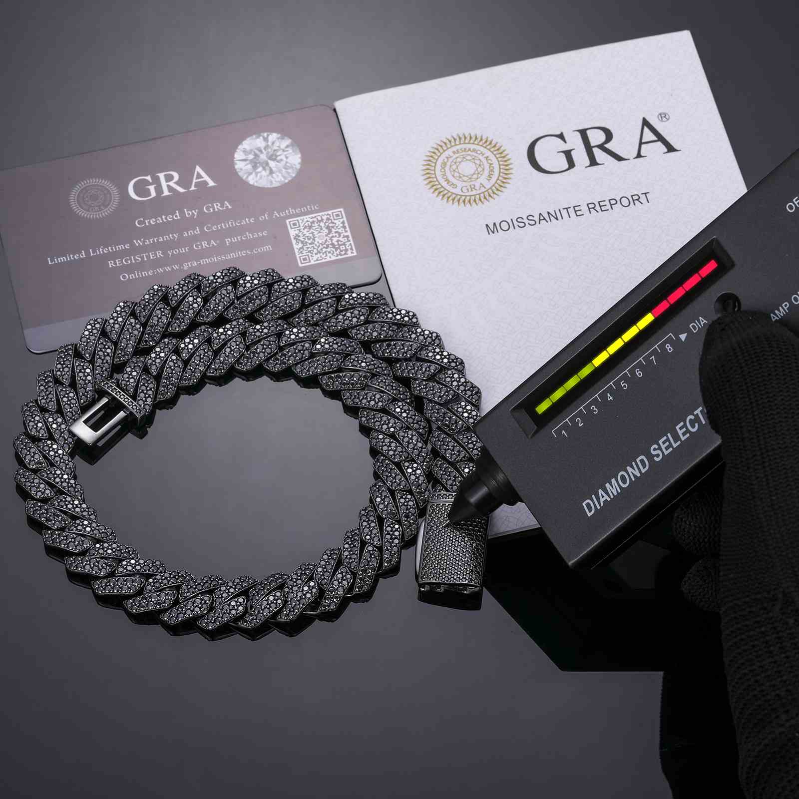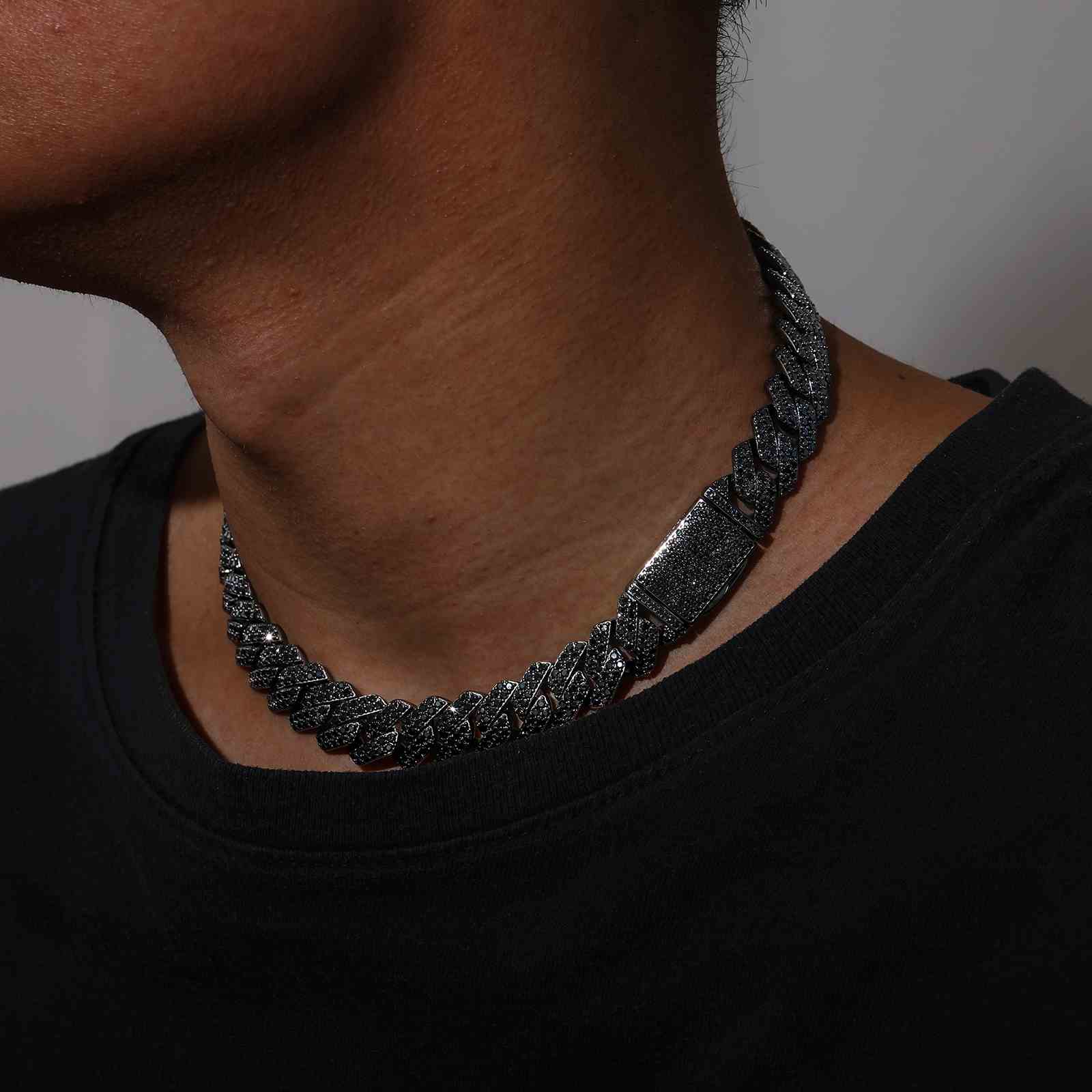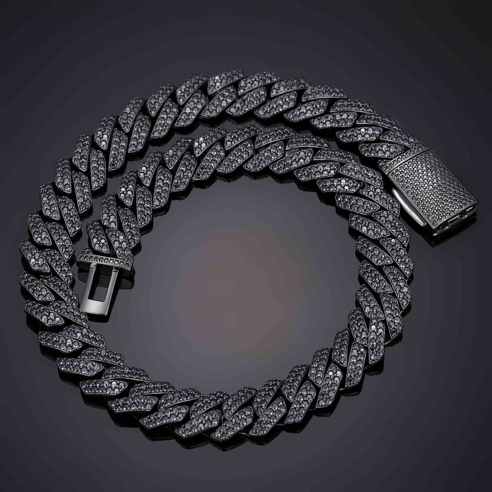 14mm S925 2 Rows Black Moissanite Cuban Link Chain