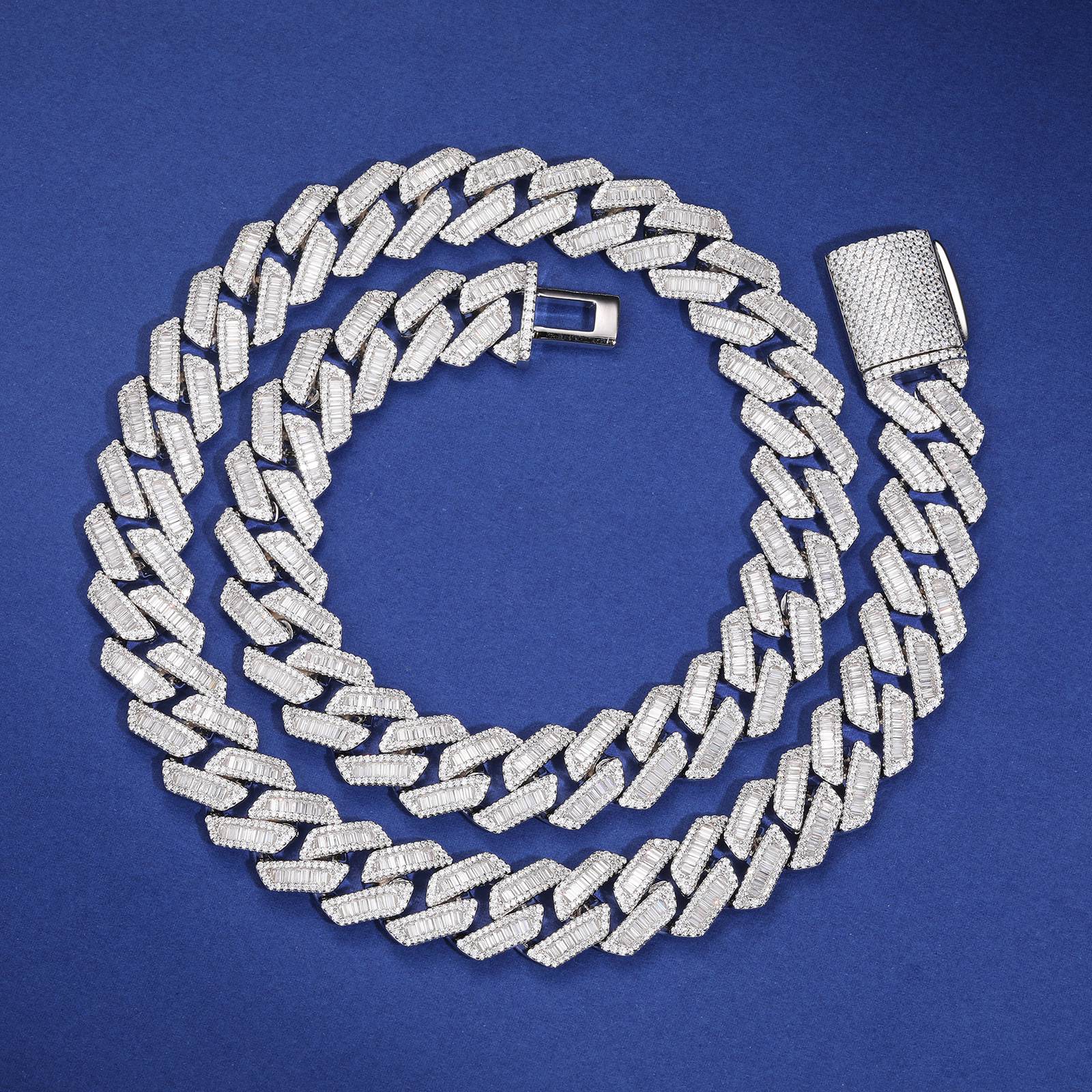 14mm S925 Baguette Moissanite Cuban Link Chain