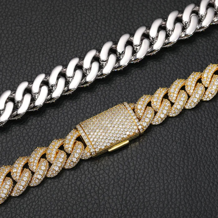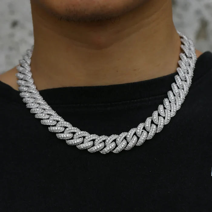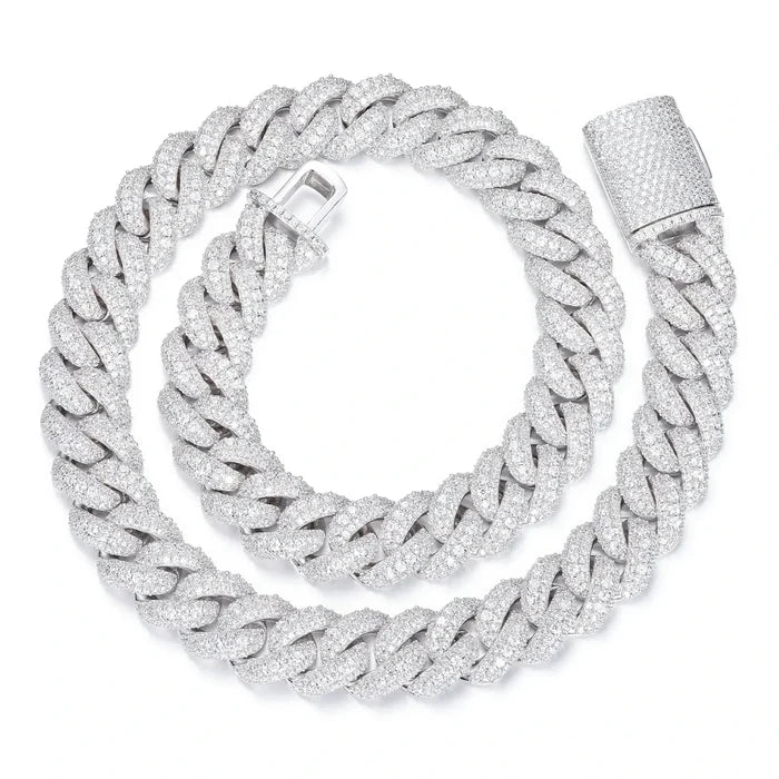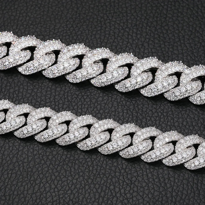 15mm S925 3 Rows Moissanite Bubble Cuban Link Chain