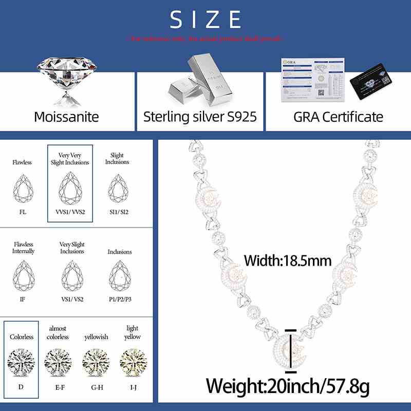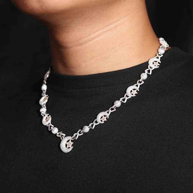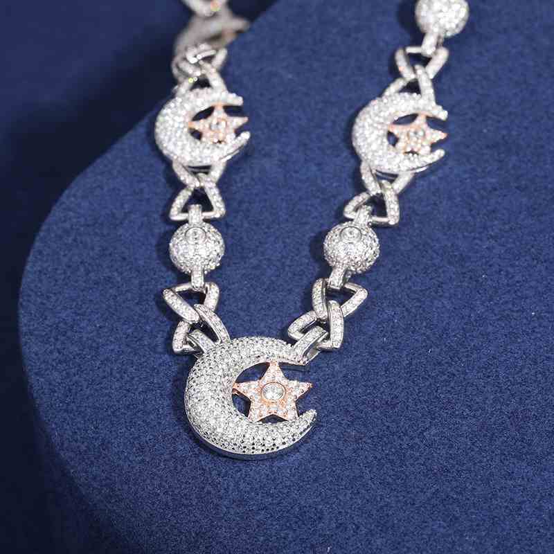 18.5mm S925 Moissanite Sun Moon Elf Ball Link Chain