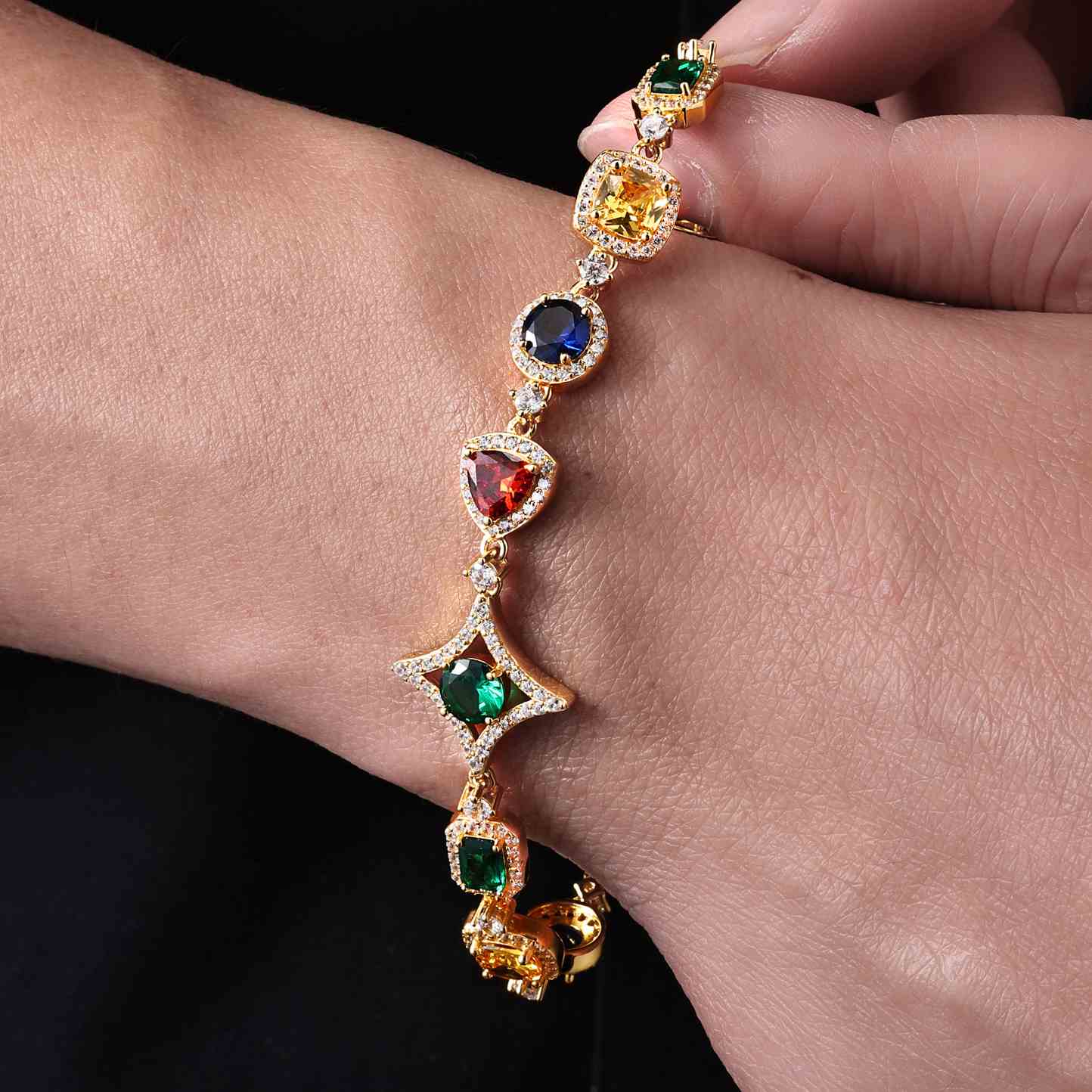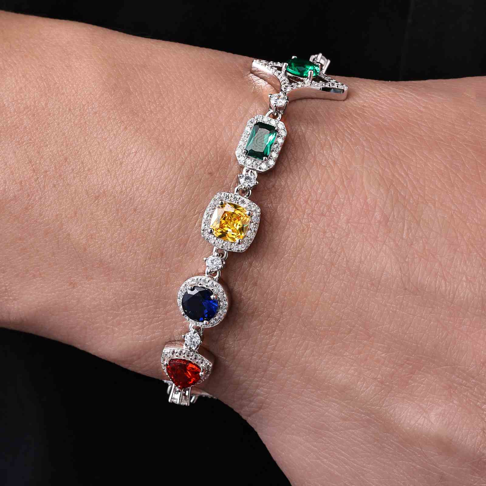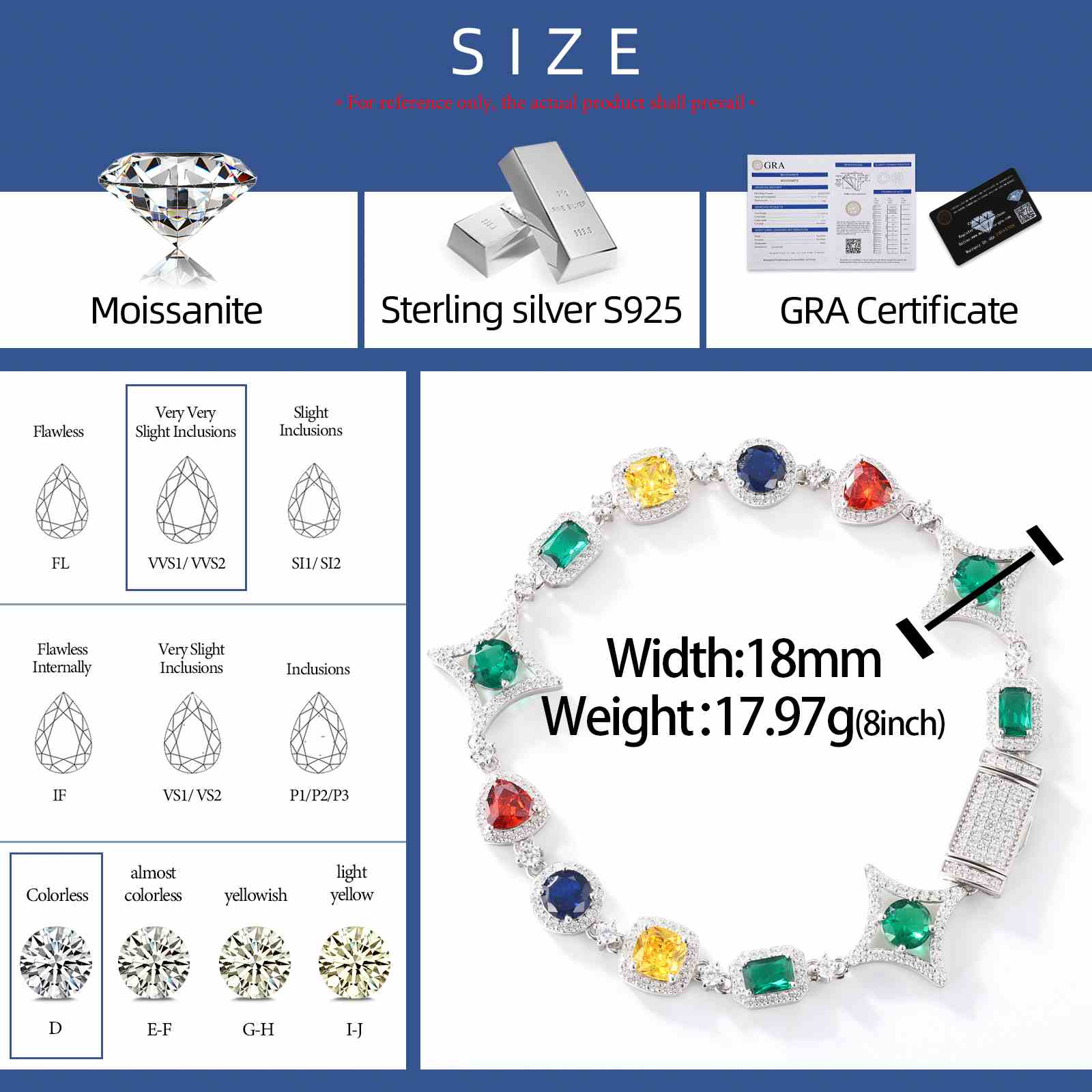 Elevate your wrist game with this 18mm S925 sterling silver bracelet, finished with a durable, fade-resistant gold plating. Vivid lab-grown... Read more