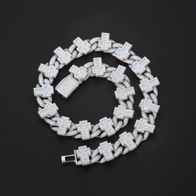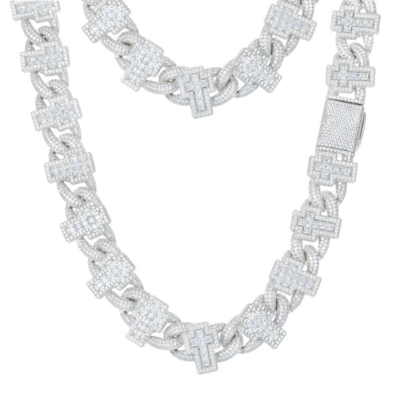 19mm S925 Moissanite Princess Cut Cross Cuban Link Chain