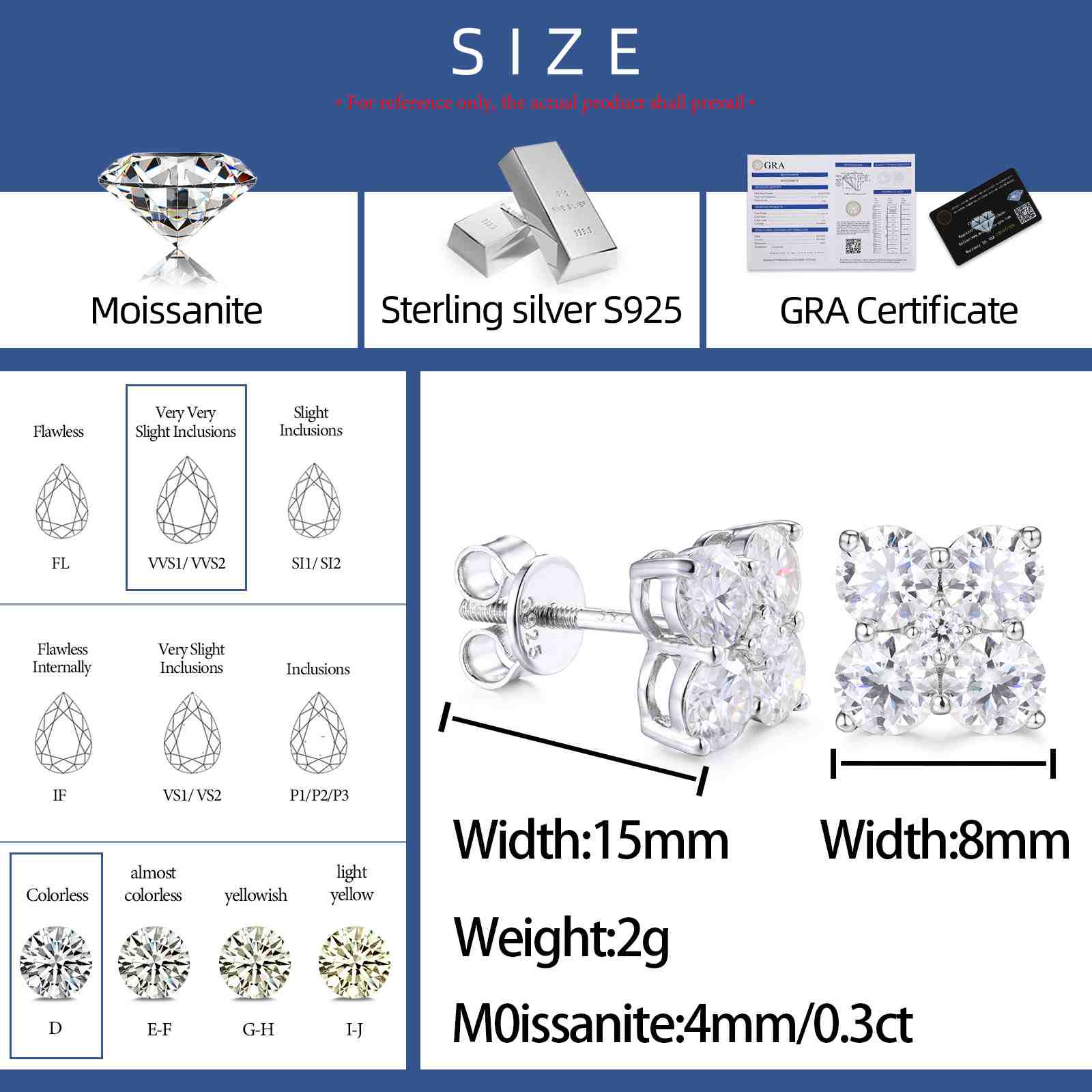 2.47CT S925 Moissanite Four Leaf Clover Stud Earrings