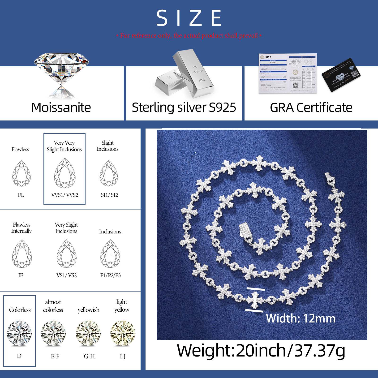 20mm S925 Moissanite Cross Link Chain