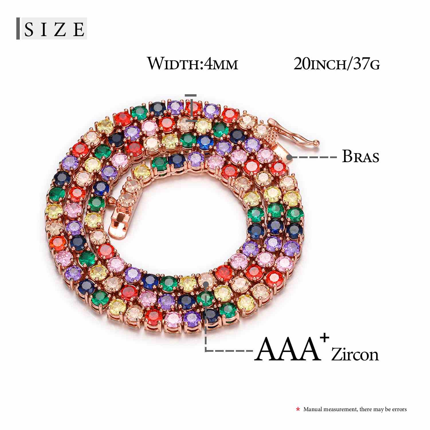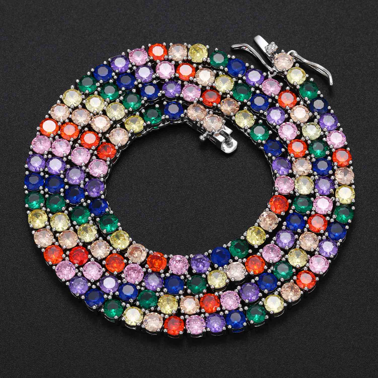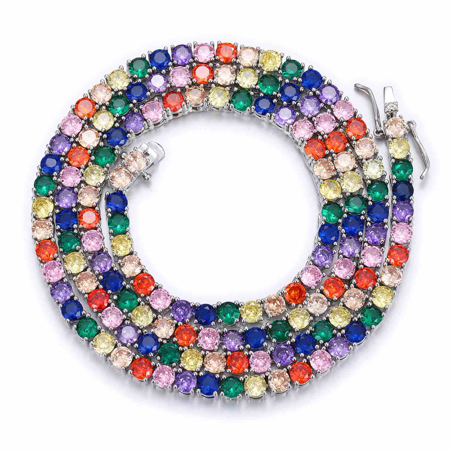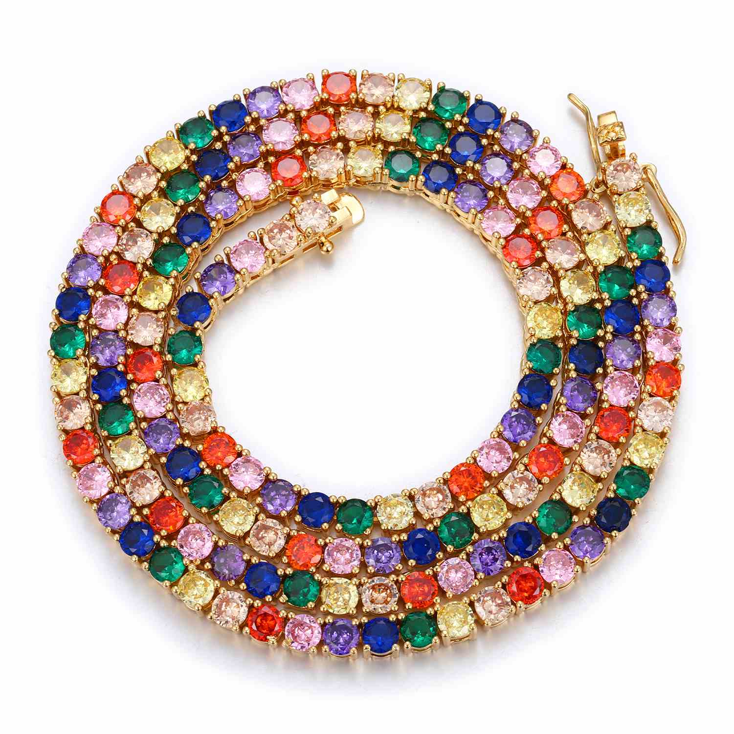 A slim 4mm chain blazing with AAAAA Cubic Zirconia in a dazzling rainbow spectrum, each stone precision-cut and prong-set for... Read more