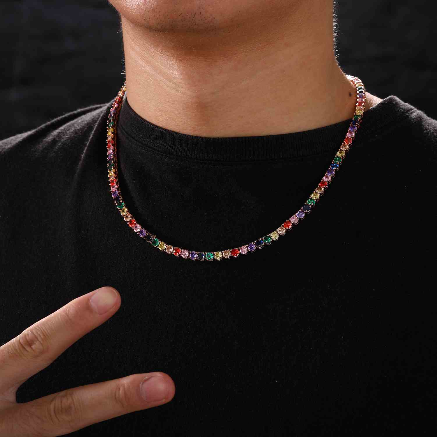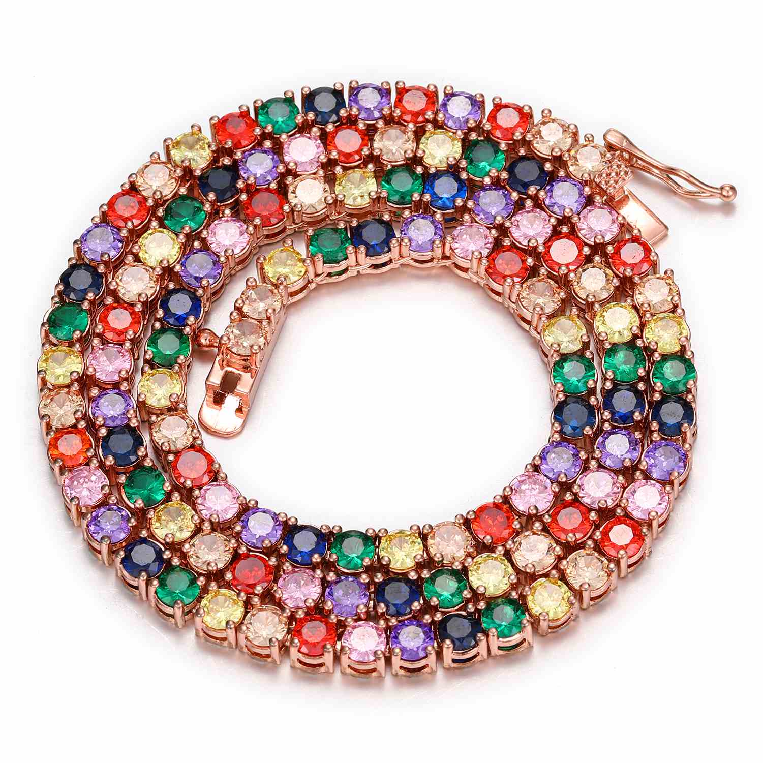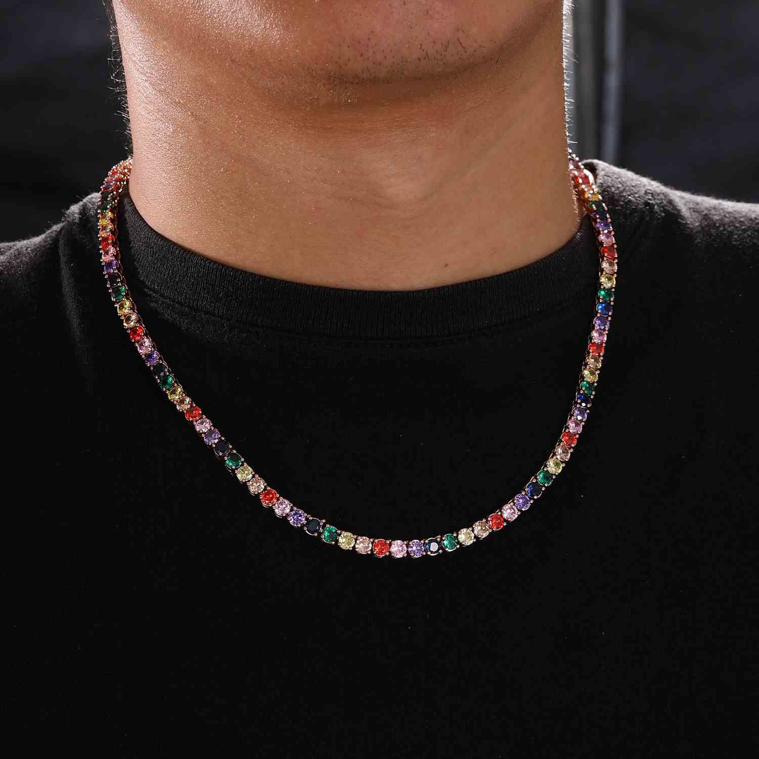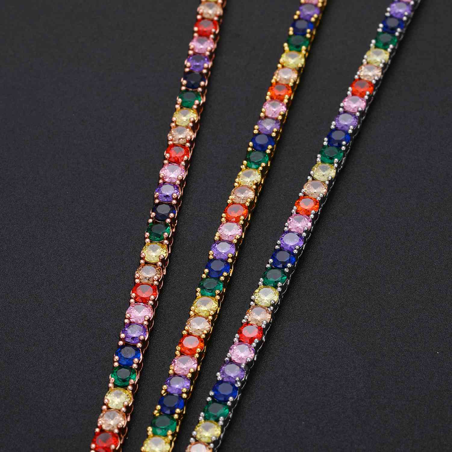 A slim 4mm chain blazing with AAAAA Cubic Zirconia in a dazzling rainbow spectrum, each stone precision-cut and prong-set for... Read more