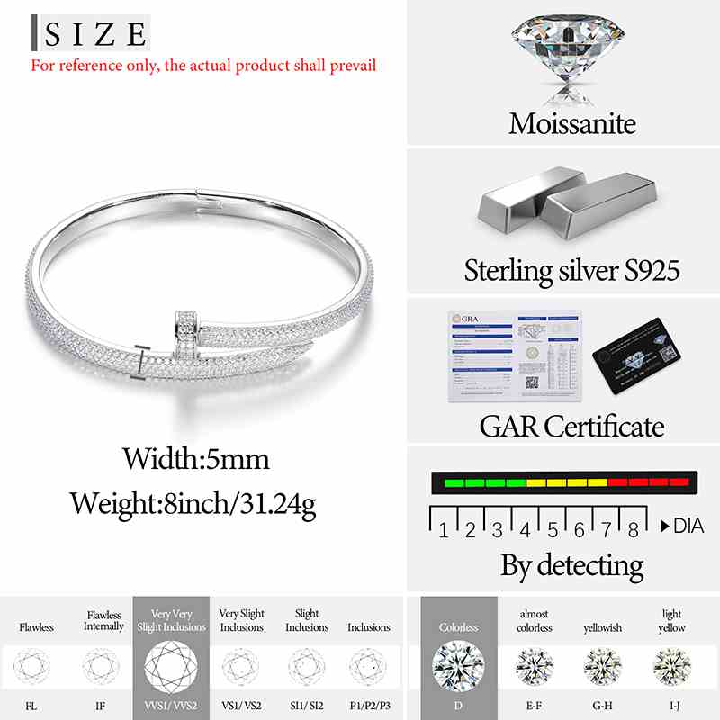 Material: 925 Sterling SilverStone Type: D Color VVS1 MoissanitePlating: White Gold, Rose GoldStone Cut: Round Brilliant CutStone Setting: Prong SettingPackage... Read more