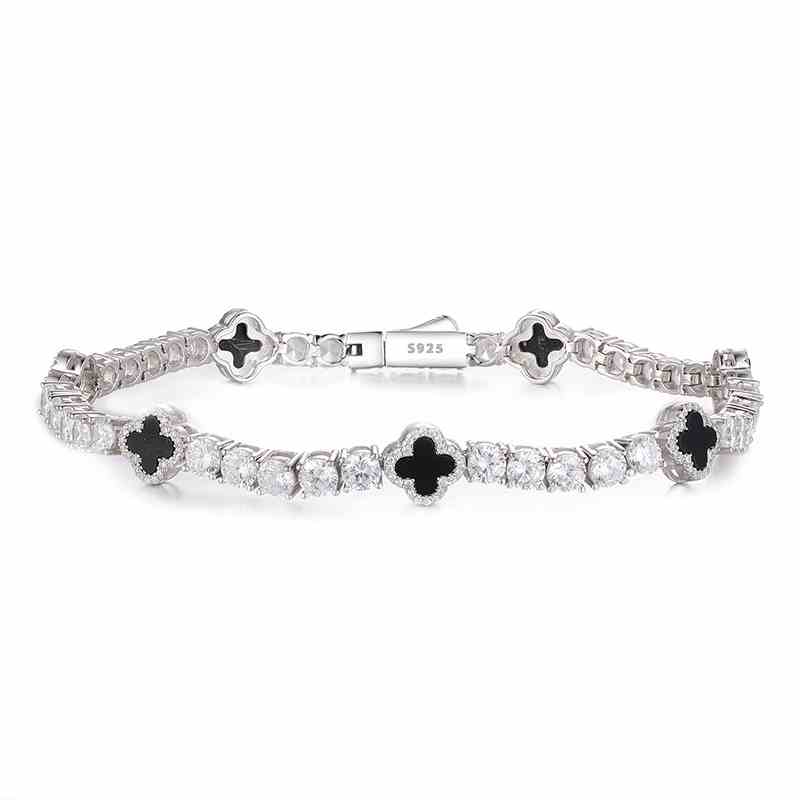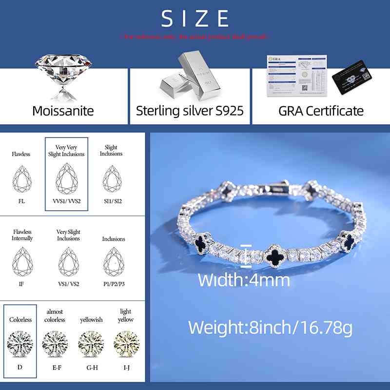 4mm S925 Moissanite Tennis Bracelet With Four Leaf Clover
