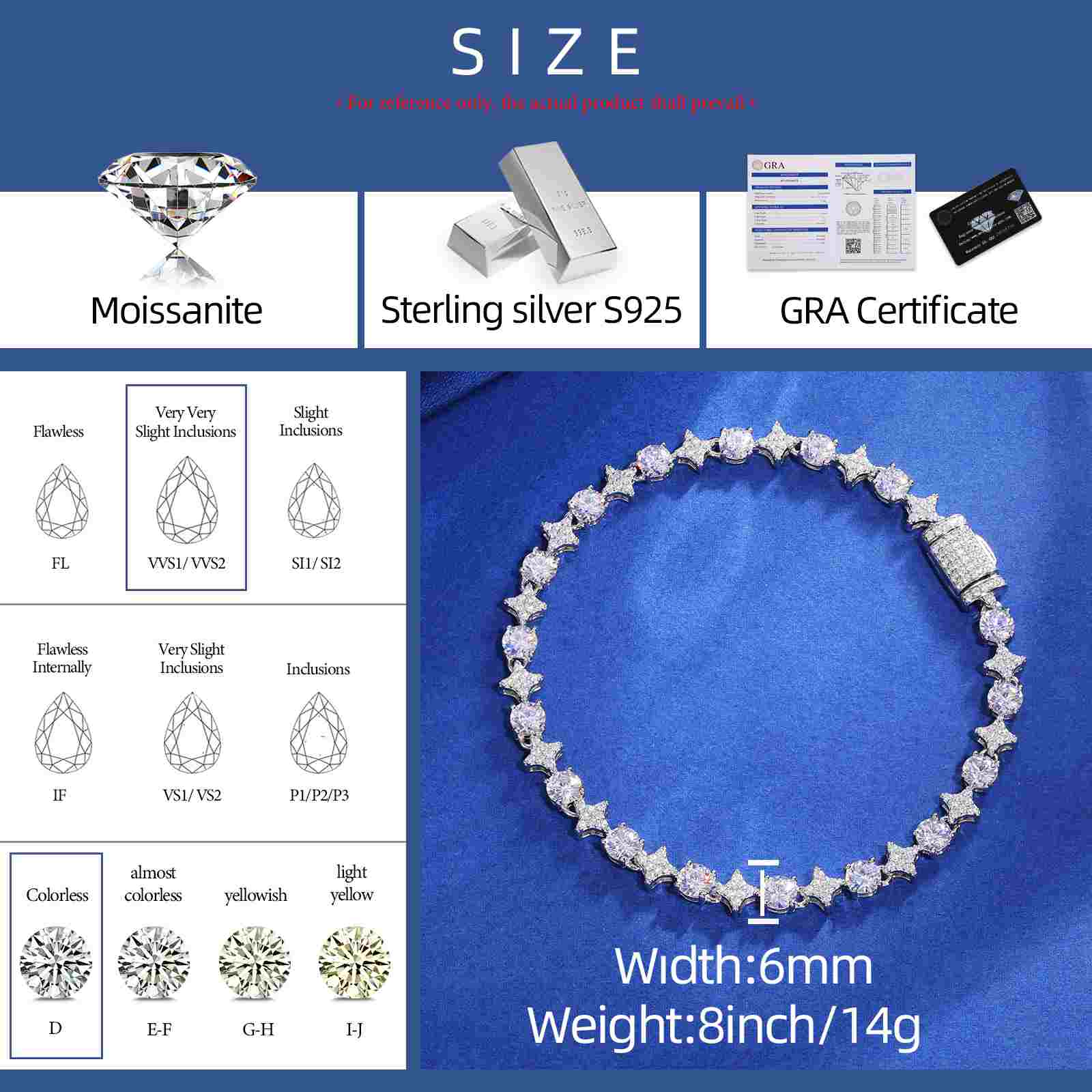 6mm 8mm S925 Moissanite Star Tennis Bracelet