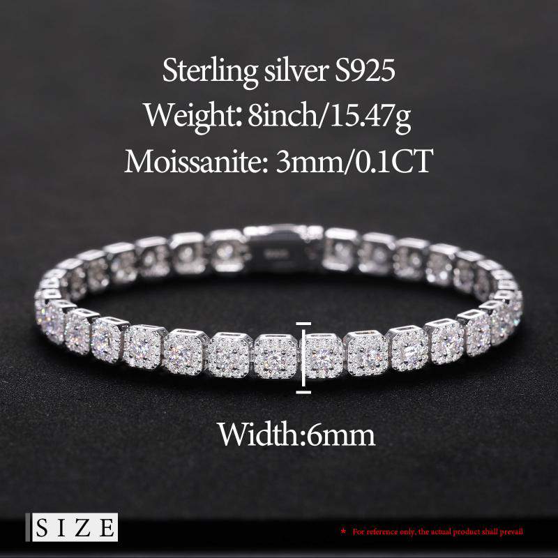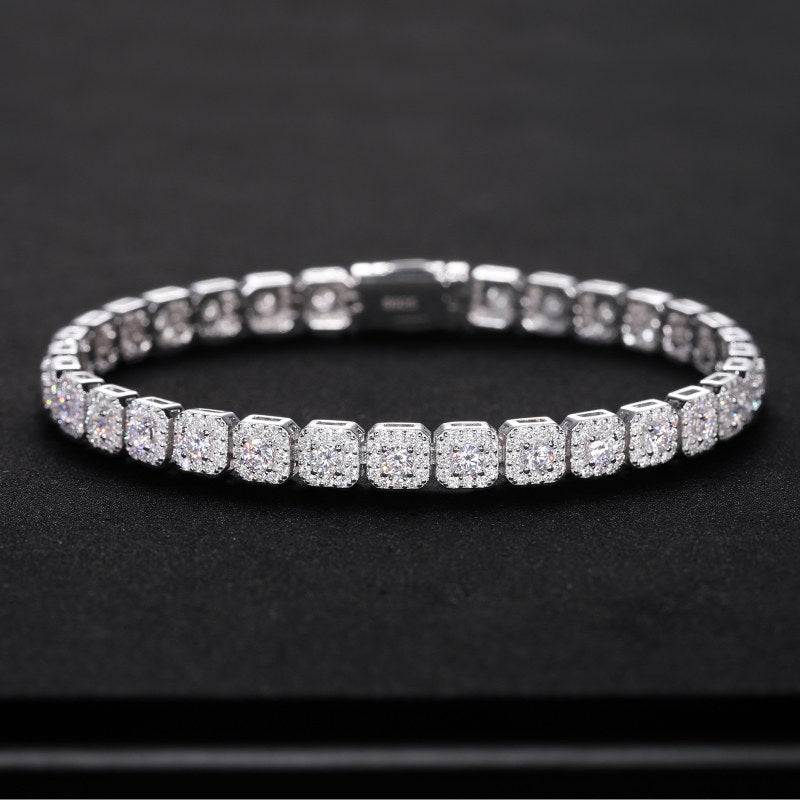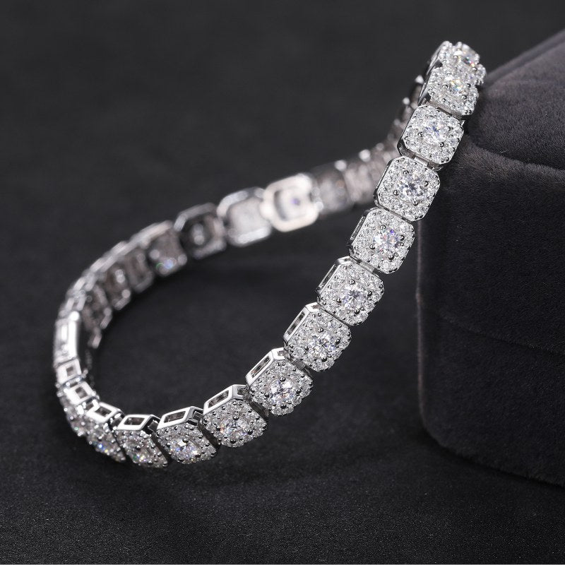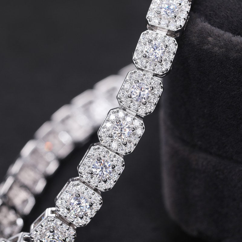 6mm S925 Moissanite Clustered Halo Tennis Bracelet