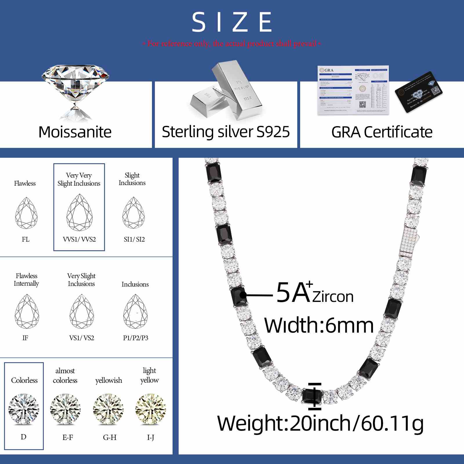 6mm S925 Moissanite Tennis Chain Separate With Baguette Gemstone