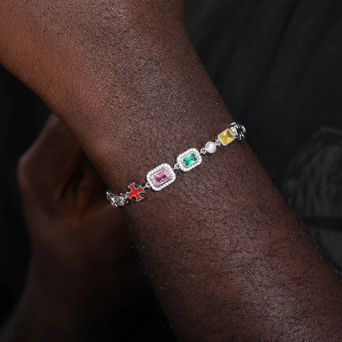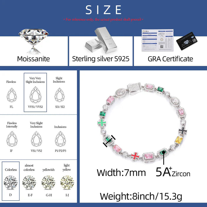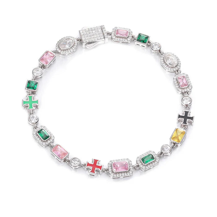 7mm S925 Color Gemstones Enamel Cross Tennis Bracelet