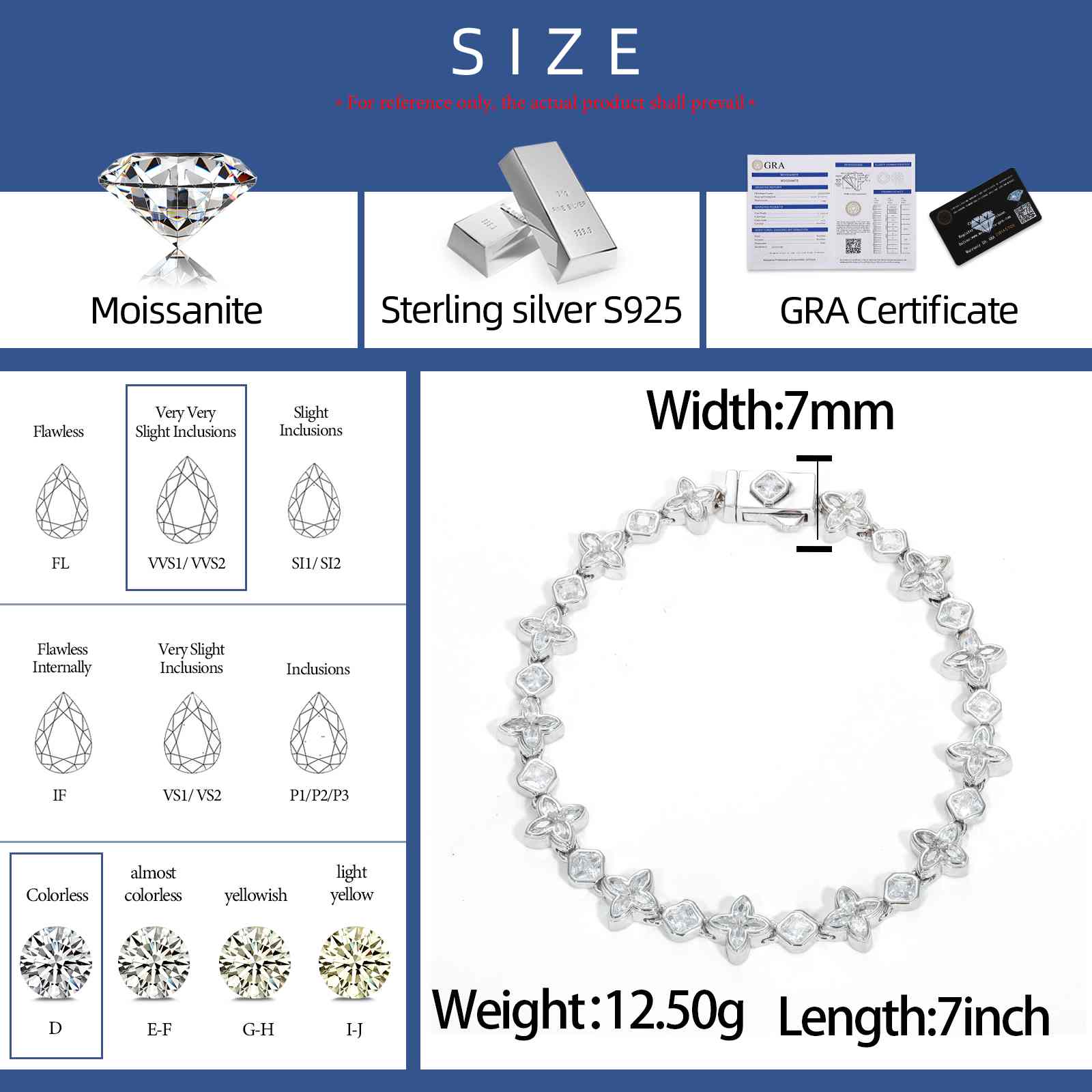 7mm S925 Moissanite Quadrangle Tennis Bracelet