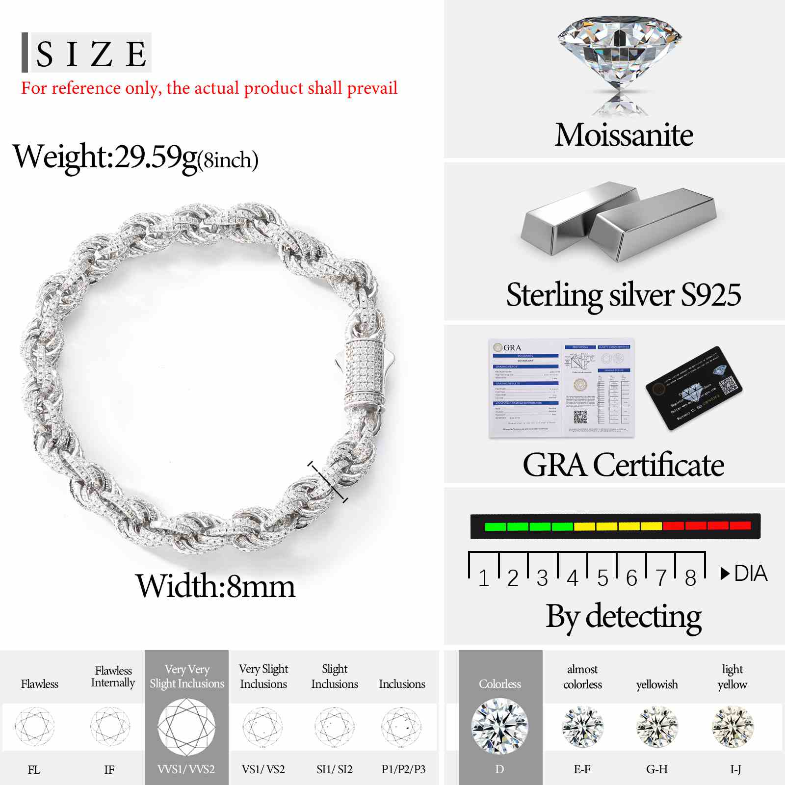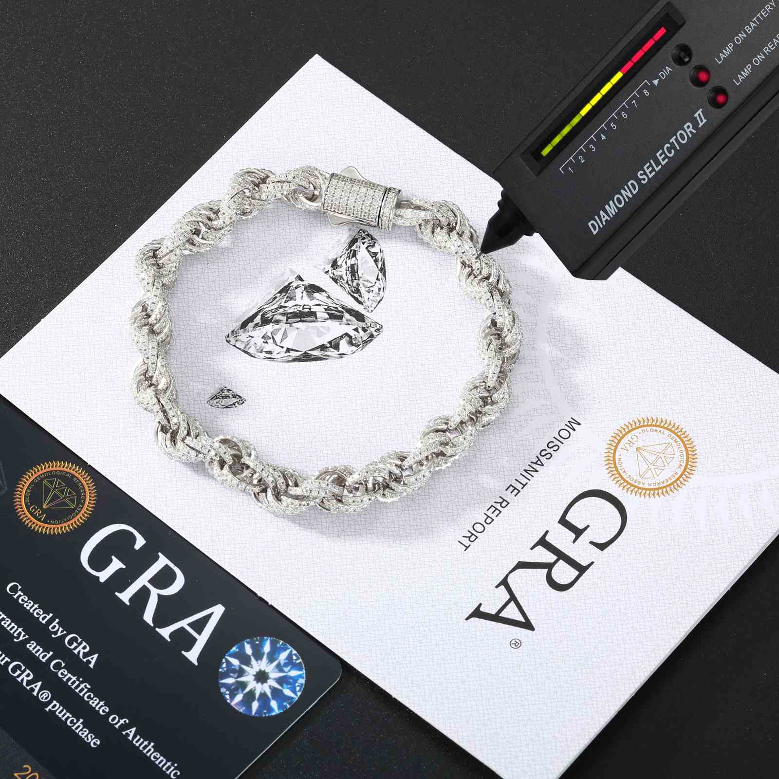 8mm 12mm S925 Moissanite Iced Out Rope Bracelet