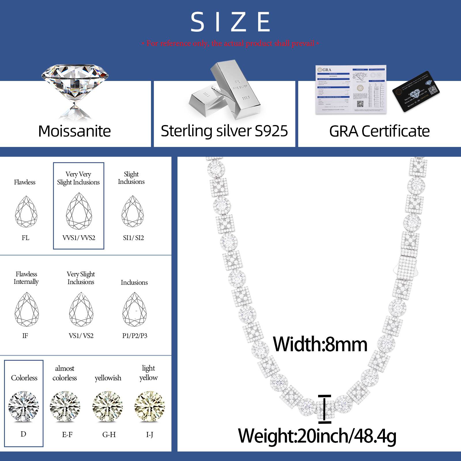 8mm S925 Moissanite Clover Seal Halo Link Chain