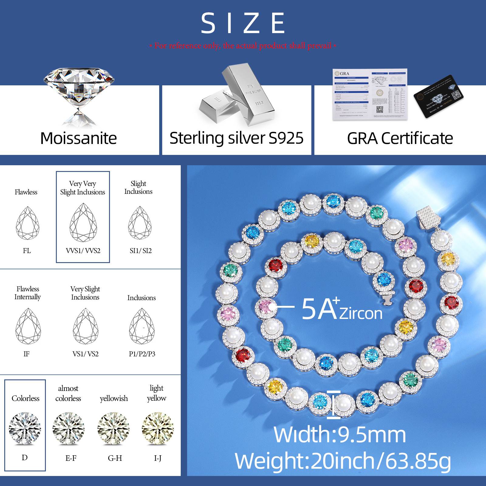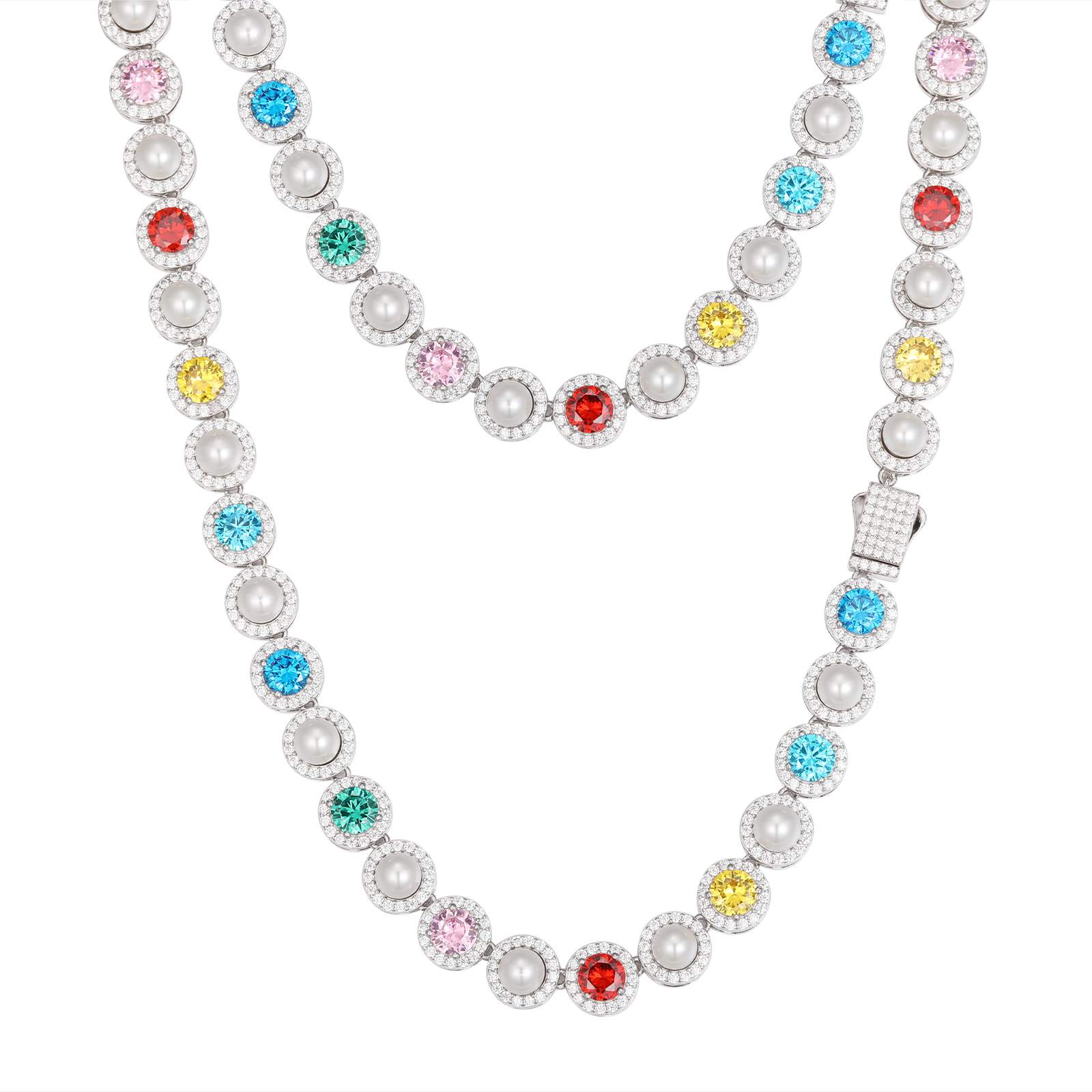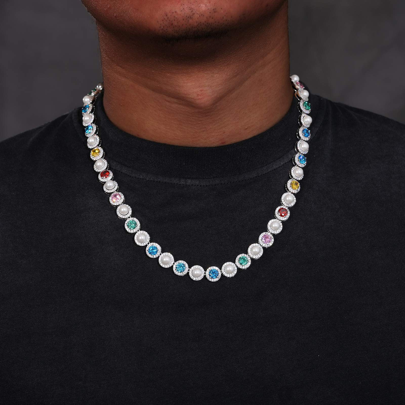 9.5mm S925 Moissanite Pearl Chain With Color CZ