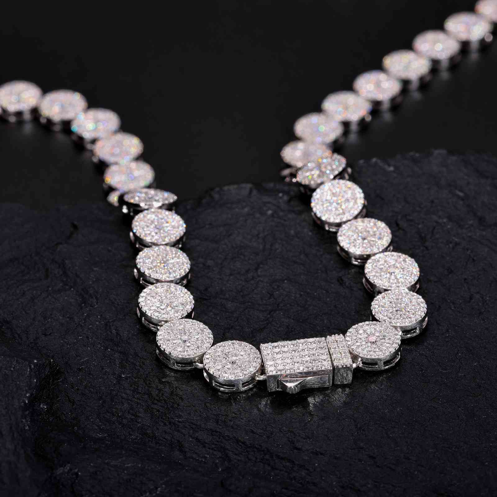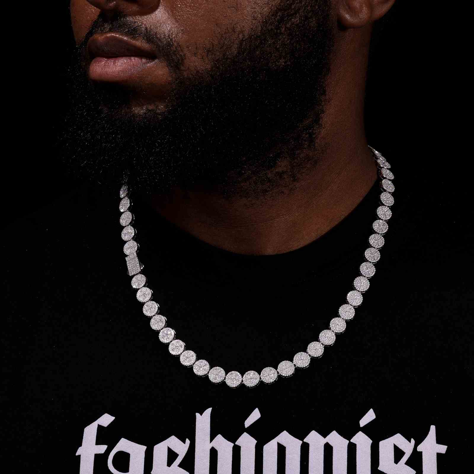 Elevate your style with this stunning 9mm circle sign link chain, fully iced out with VVS1 clarity moissanite stones. Crafted... Read more