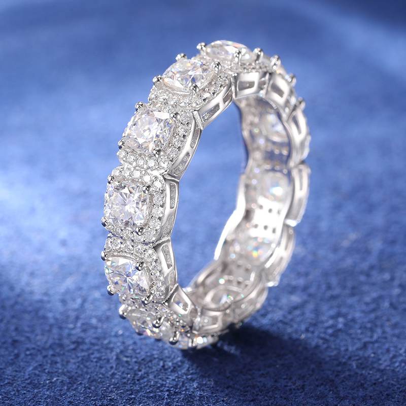 S925 1 Row Cushion Cut Moissanite Band Ring