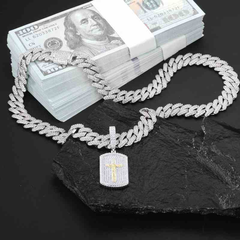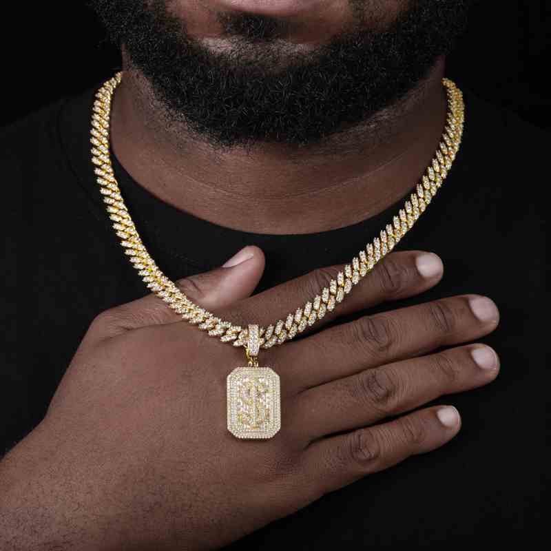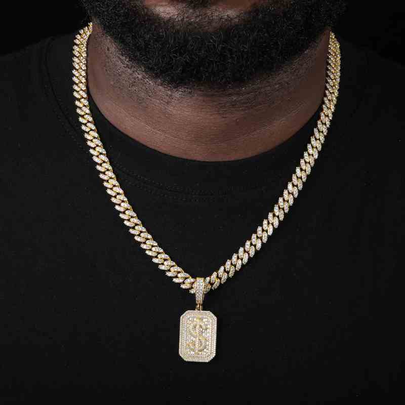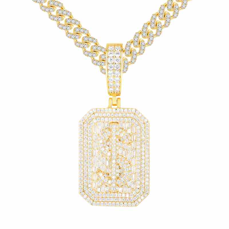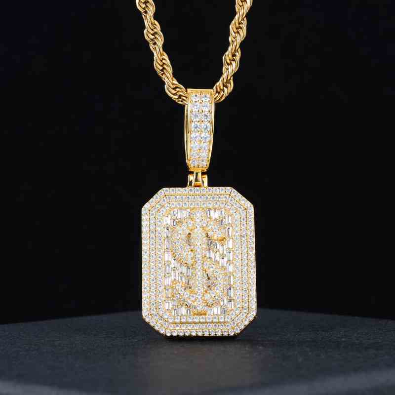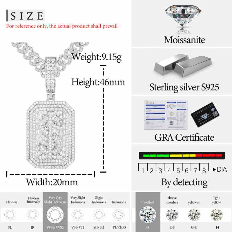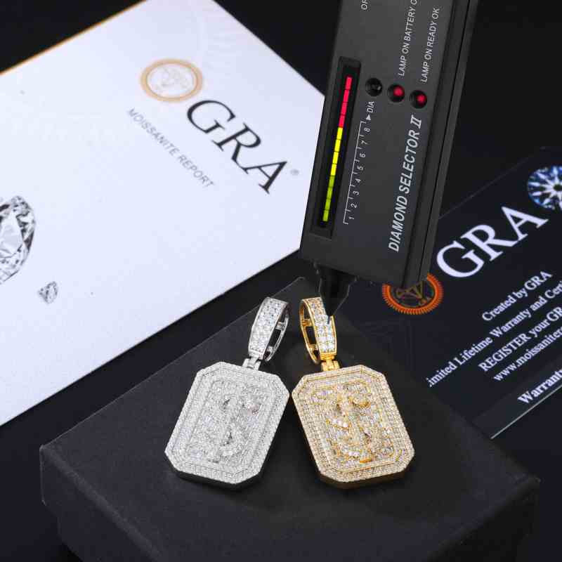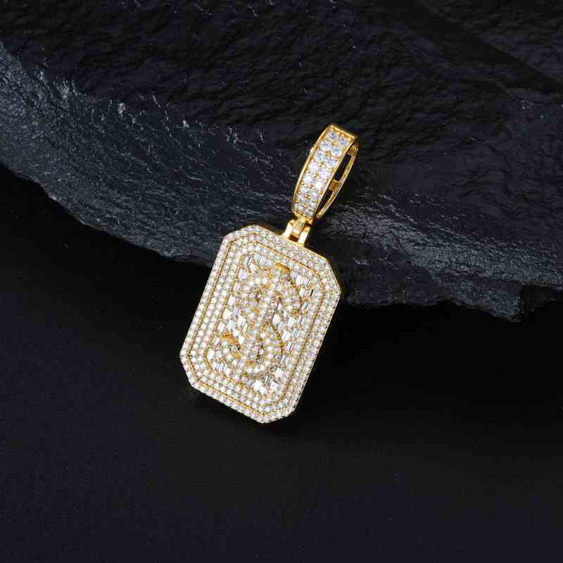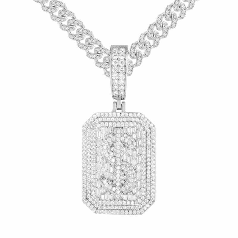 S925 Baguette Moissanite Dollar Sign Dog Tag Pendant