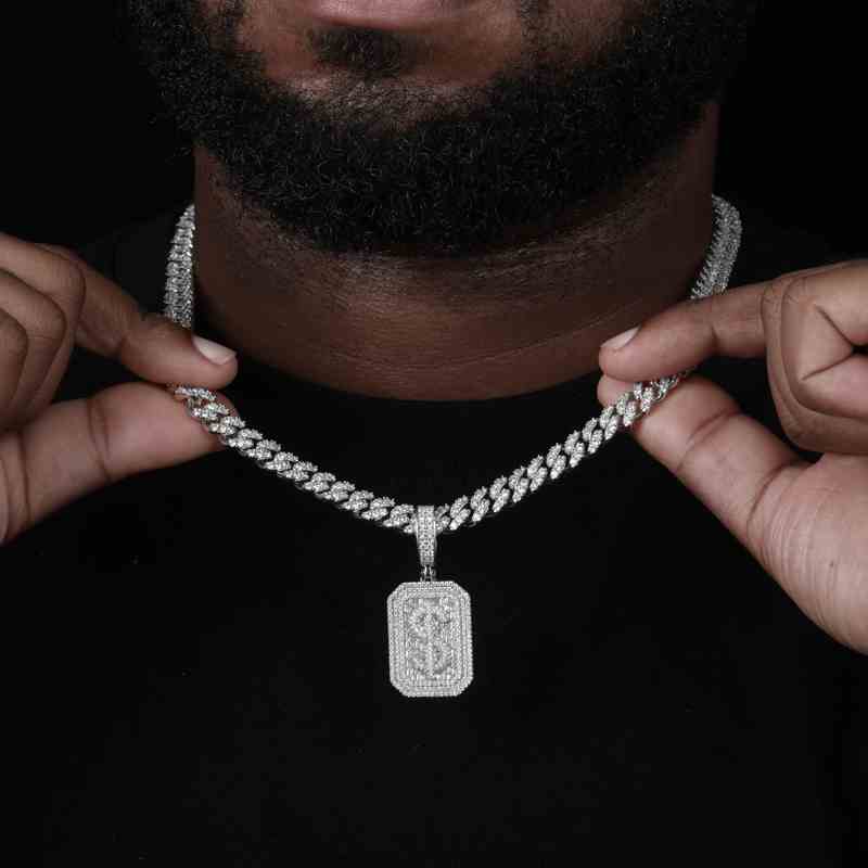 Own the spotlight with the Noctari S925 Baguette Moissanite Dollar Sign Dog Tag Pendant. Crafted from premium 925 sterling silver... Read more