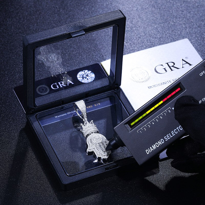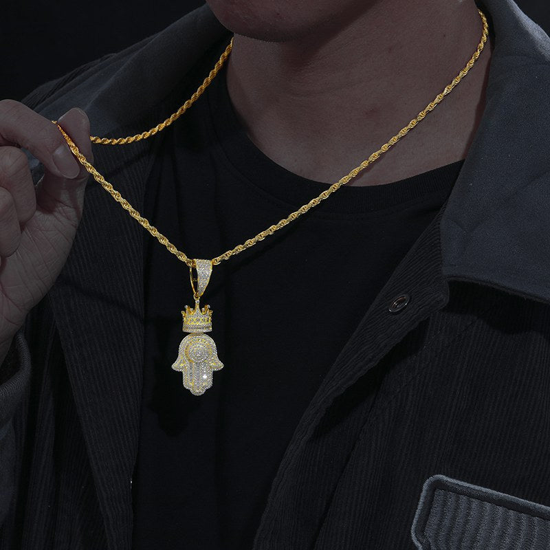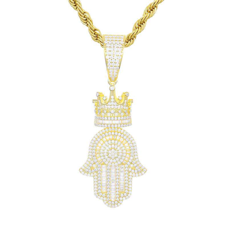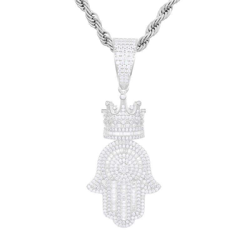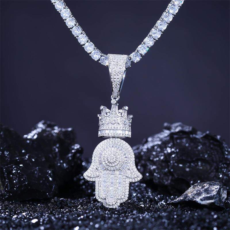 S925 Baguette Moissanite Hamsa Hand Pendant With Crown