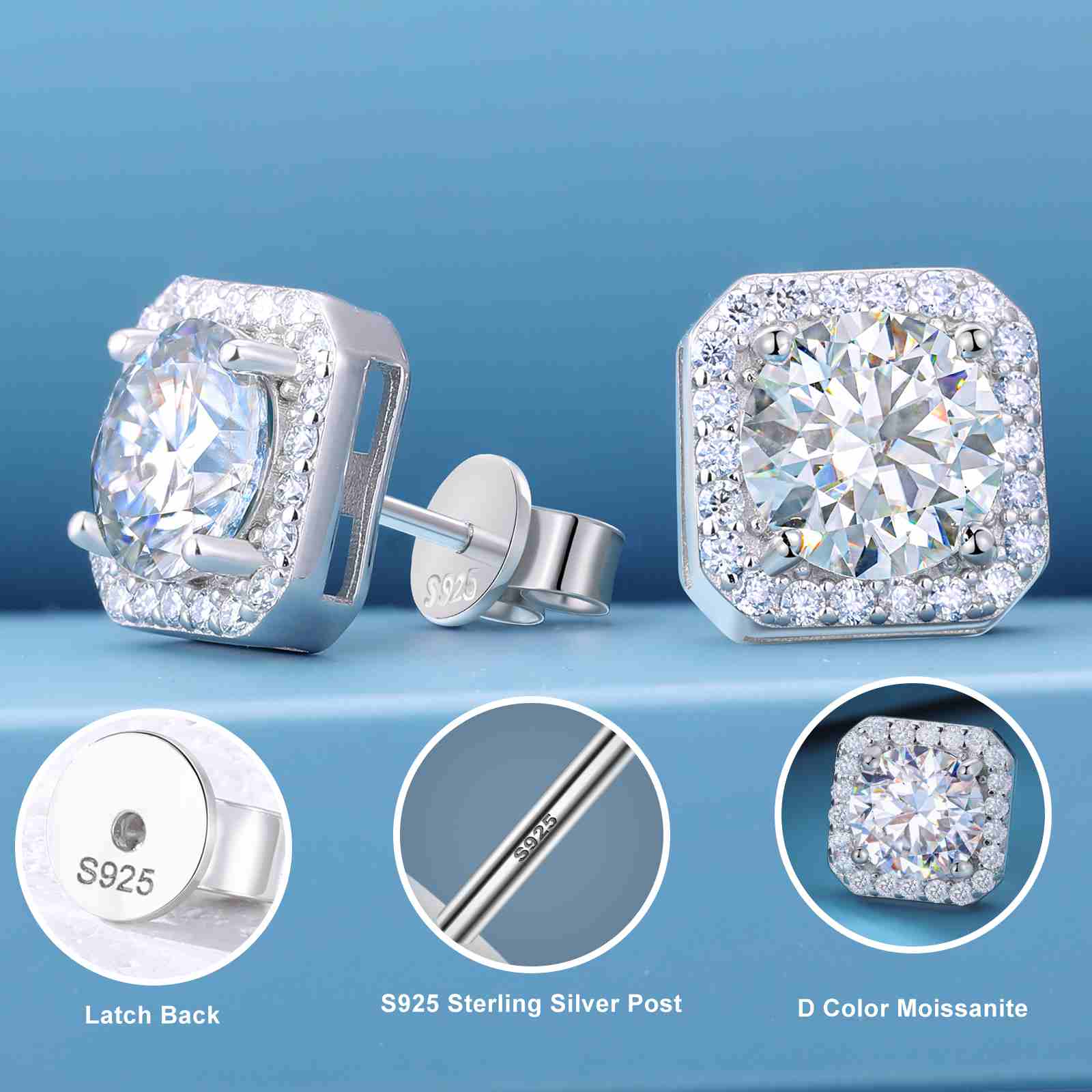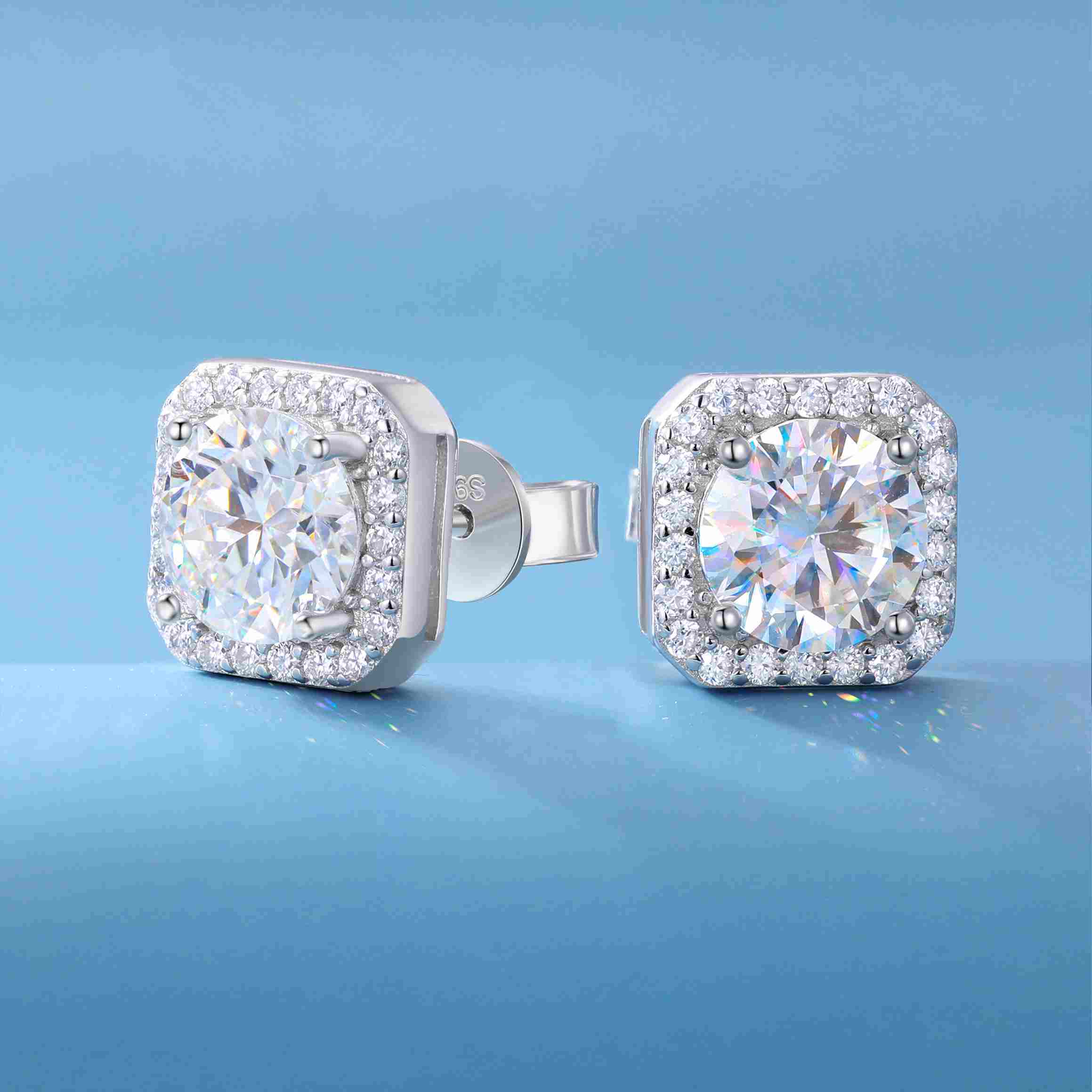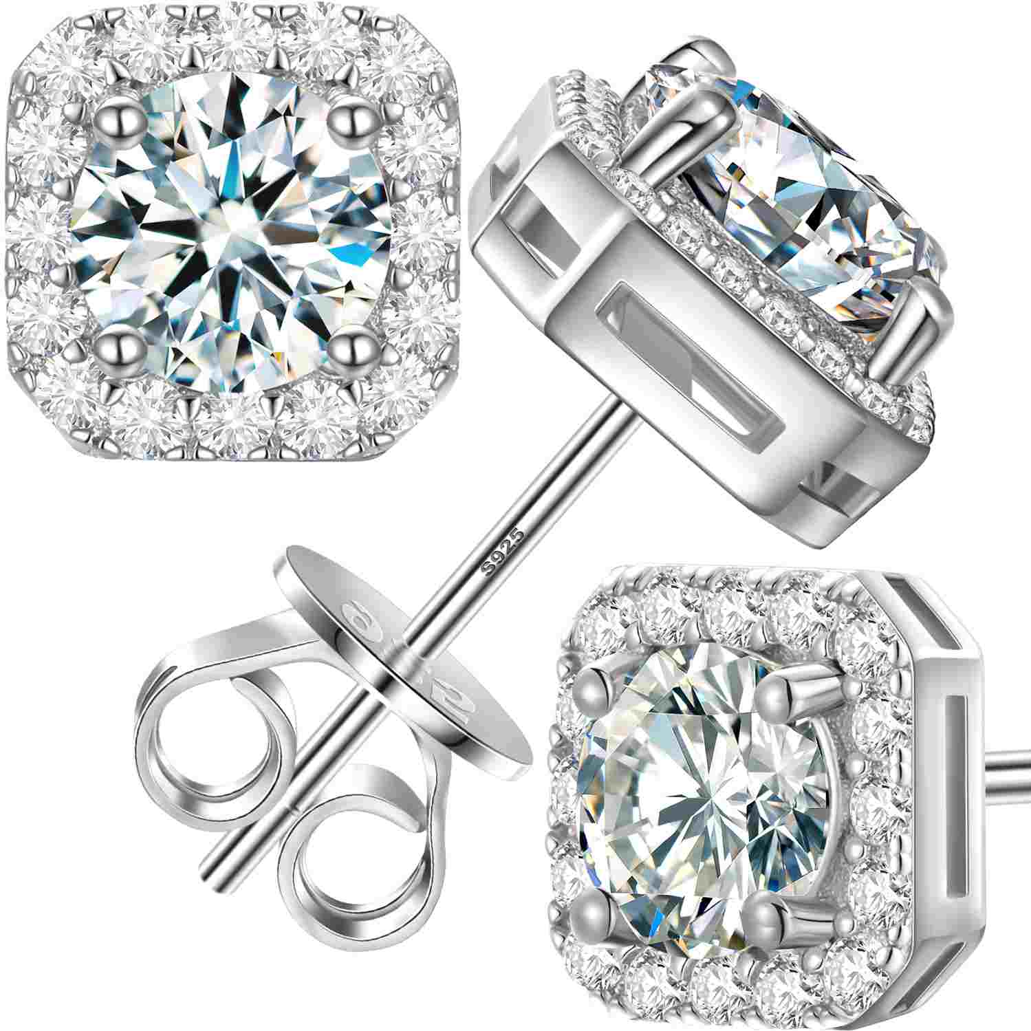 S925 Cluster Moissanite Sqare Halo Stud Earrings Collections