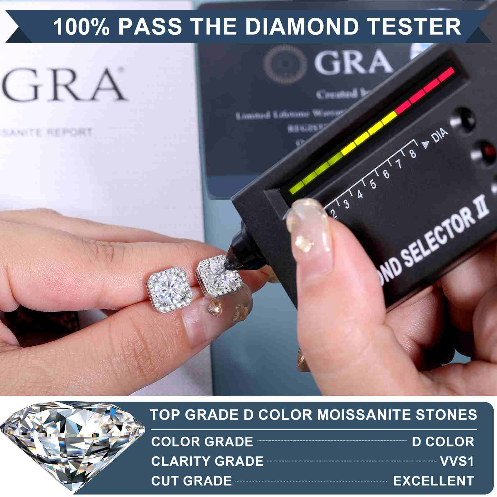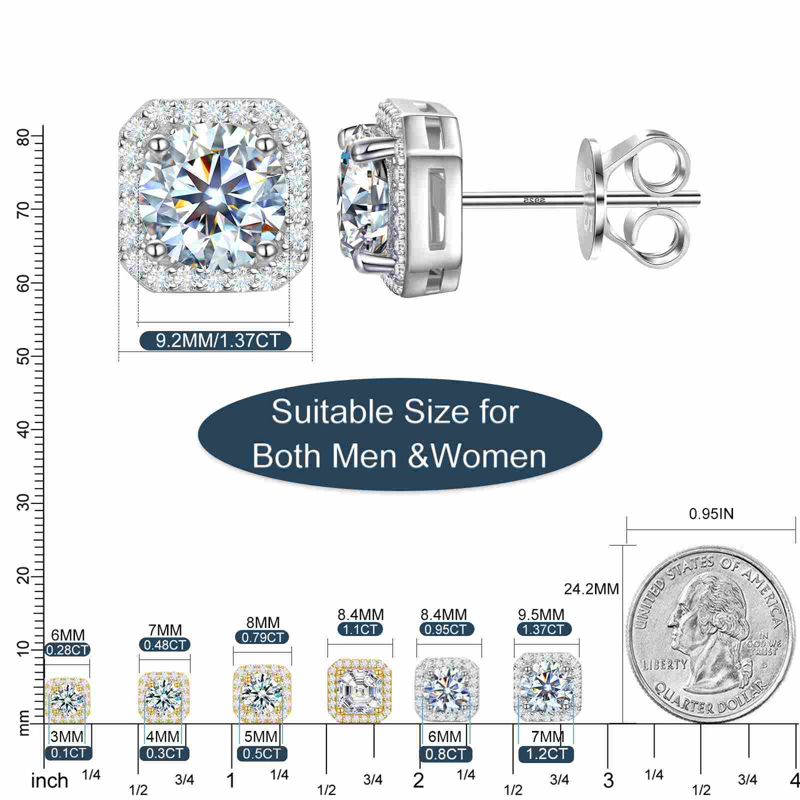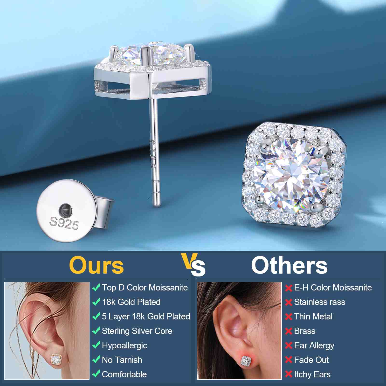 S925 Cluster Moissanite Sqare Halo Stud Earrings Collections