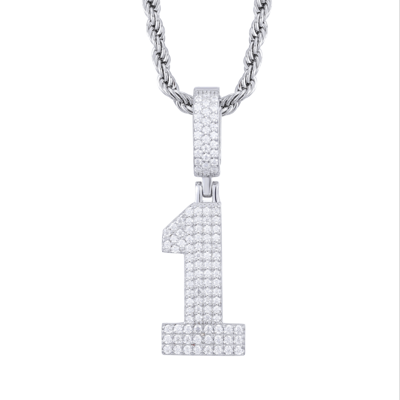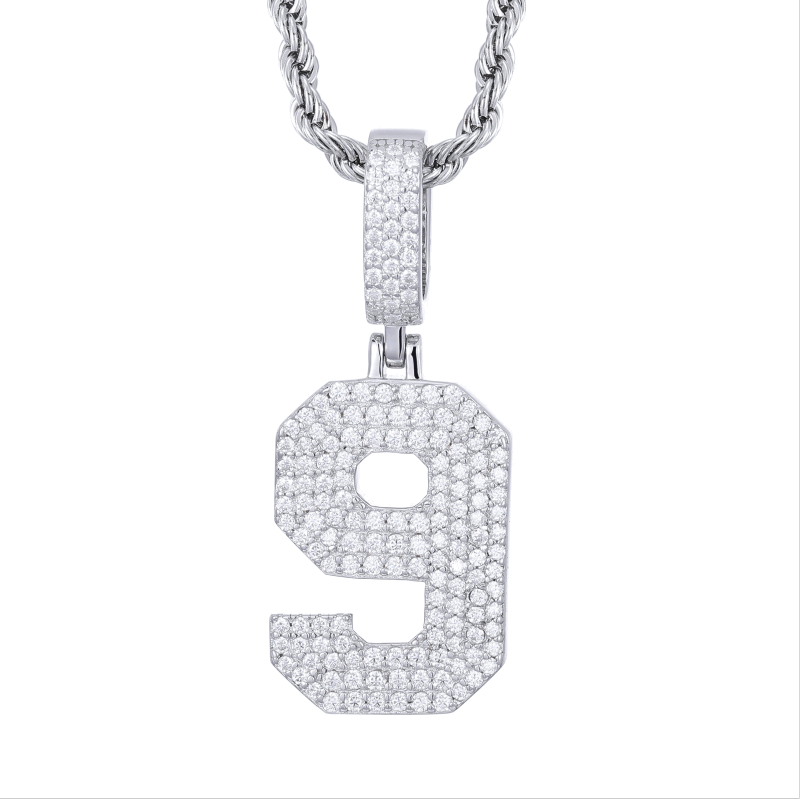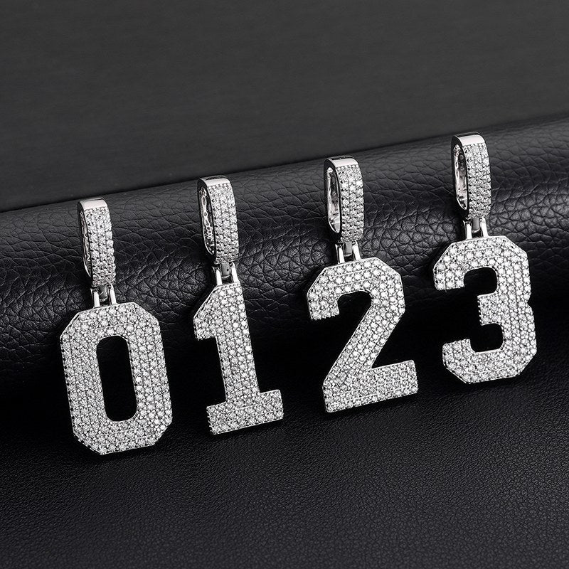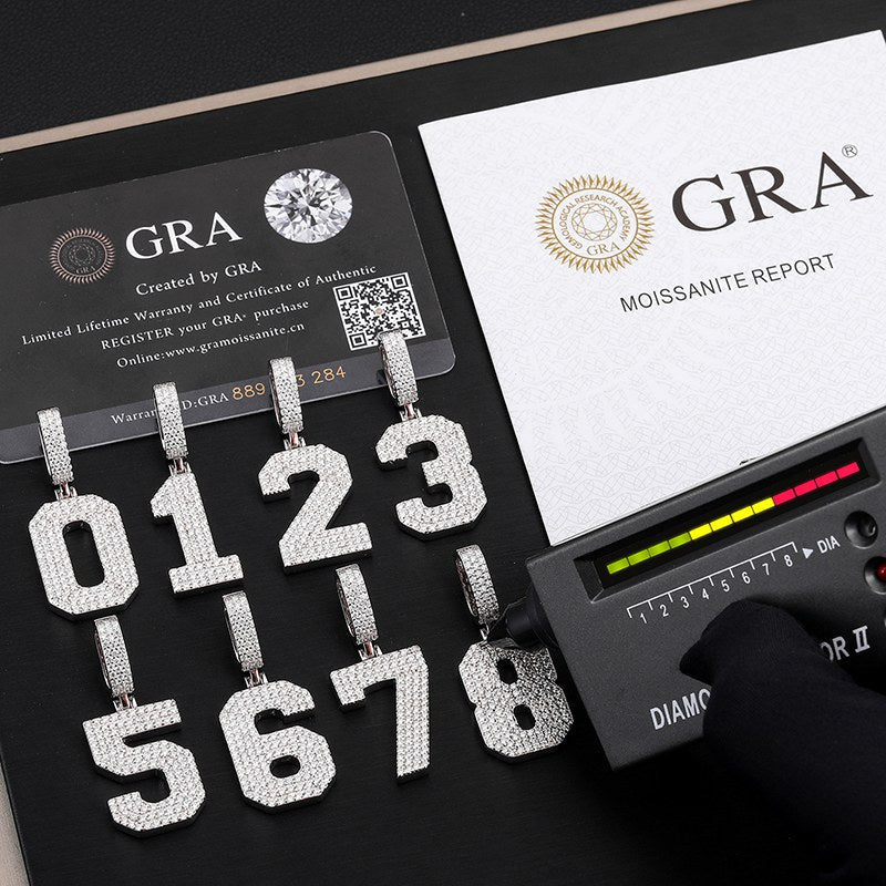 S925 Micro Moissanite 0-9 Number Pendant