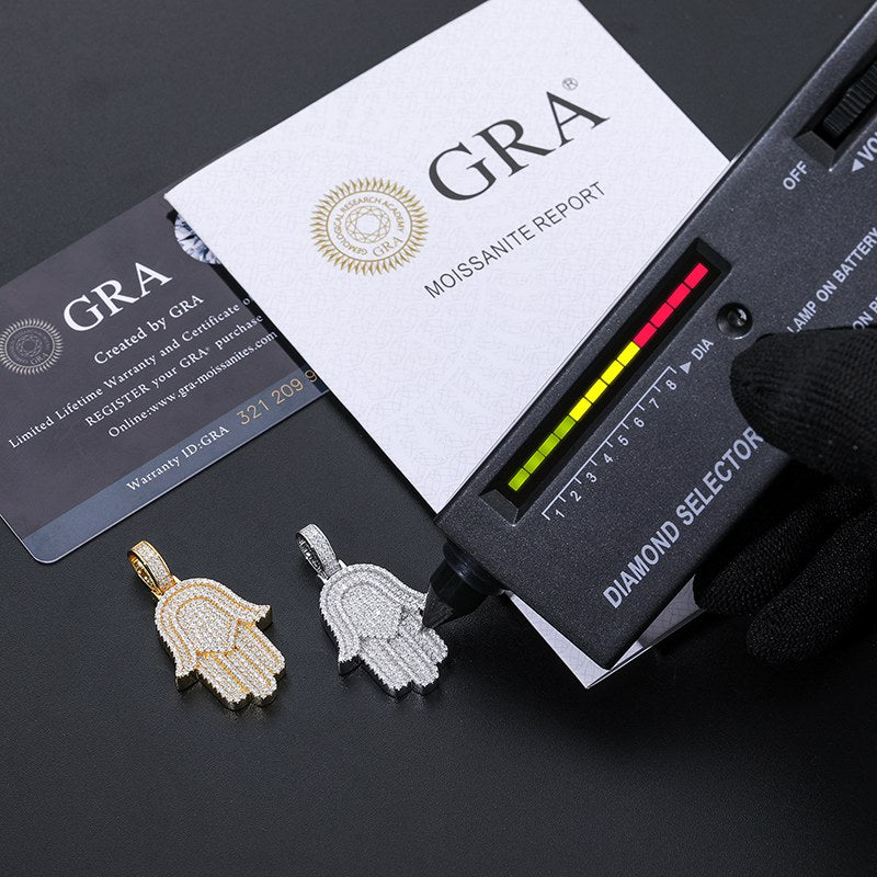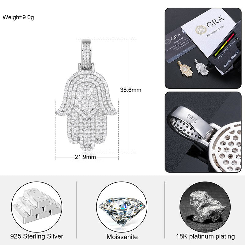 S925 Micro Moissanite Hamsa Hand Pendant