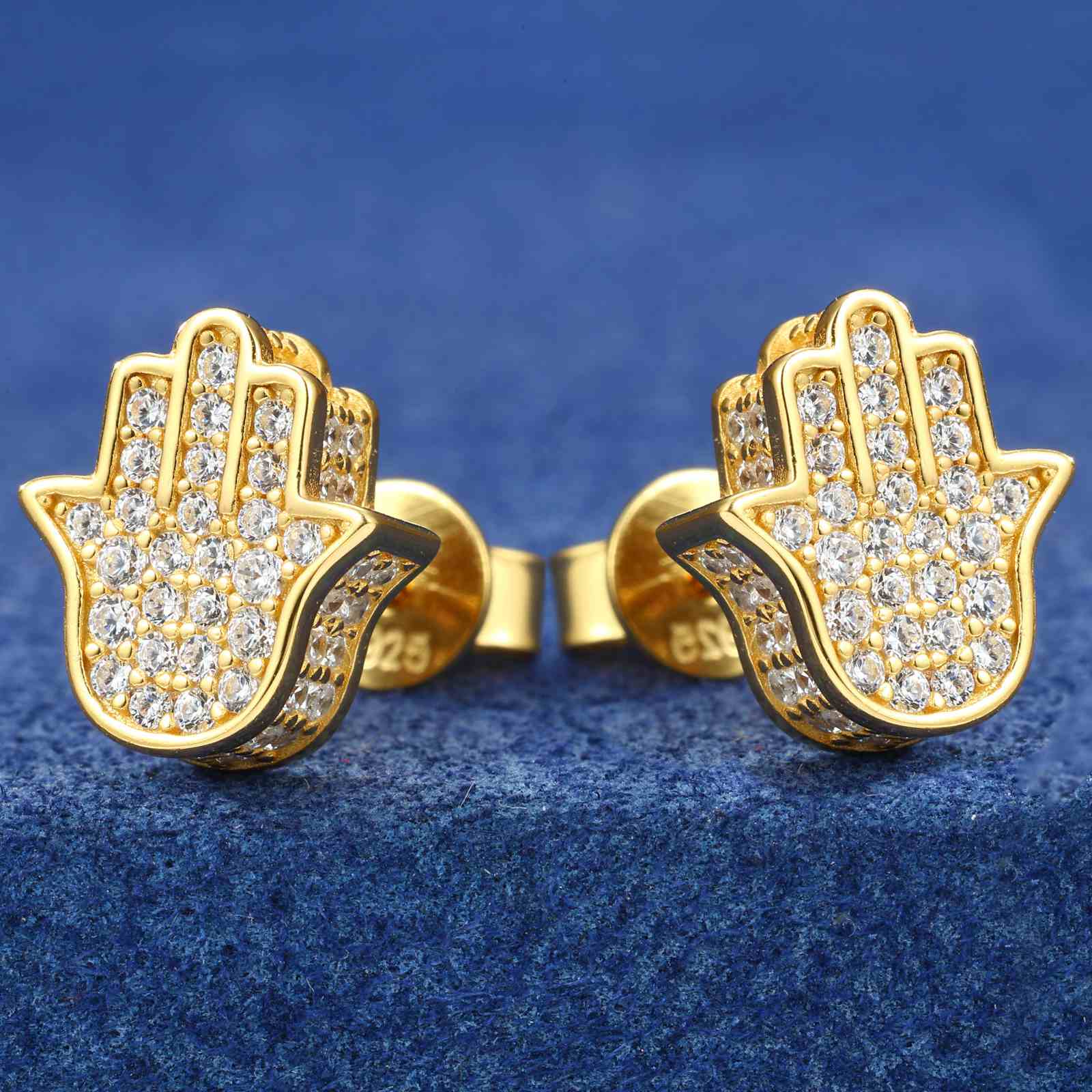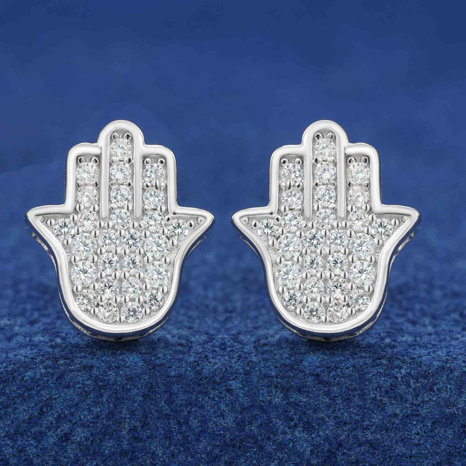 S925 Moissanite 3D Hamsa Hand Stud Earrings