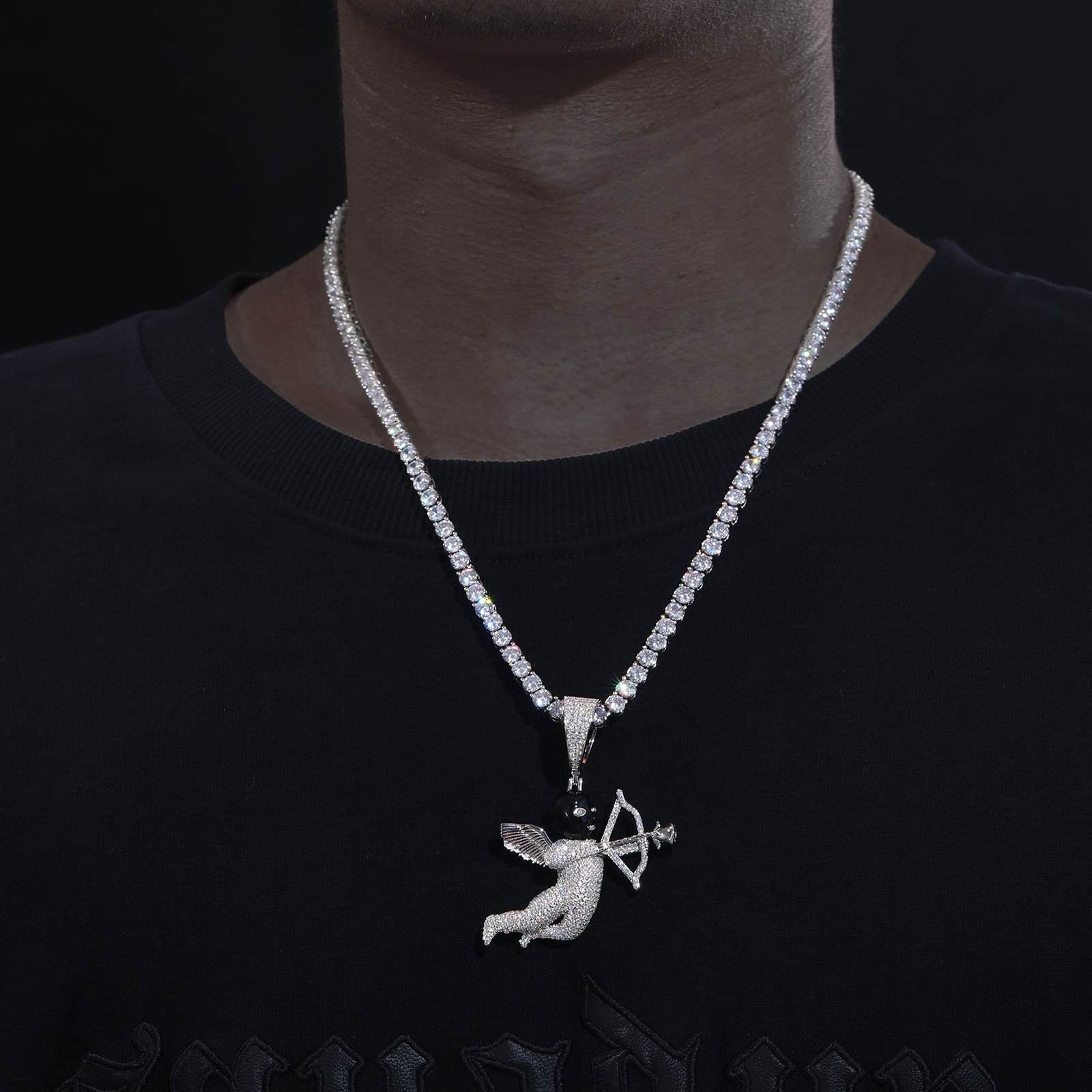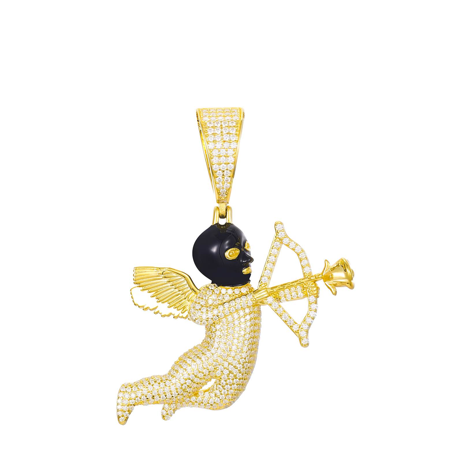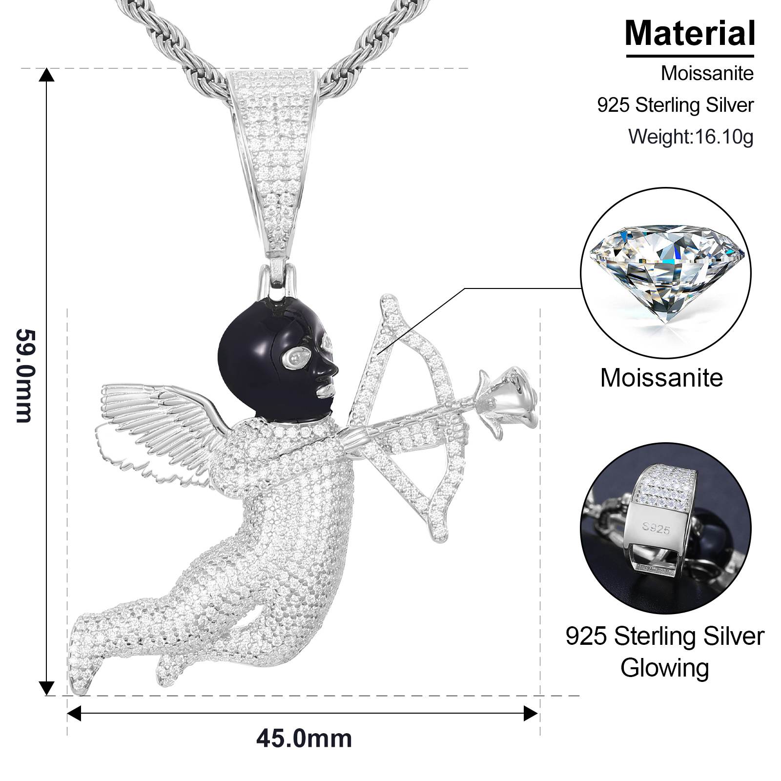 S925 Moissanite Angel Cupid Pendant With Black Masked Arrow Of Eros