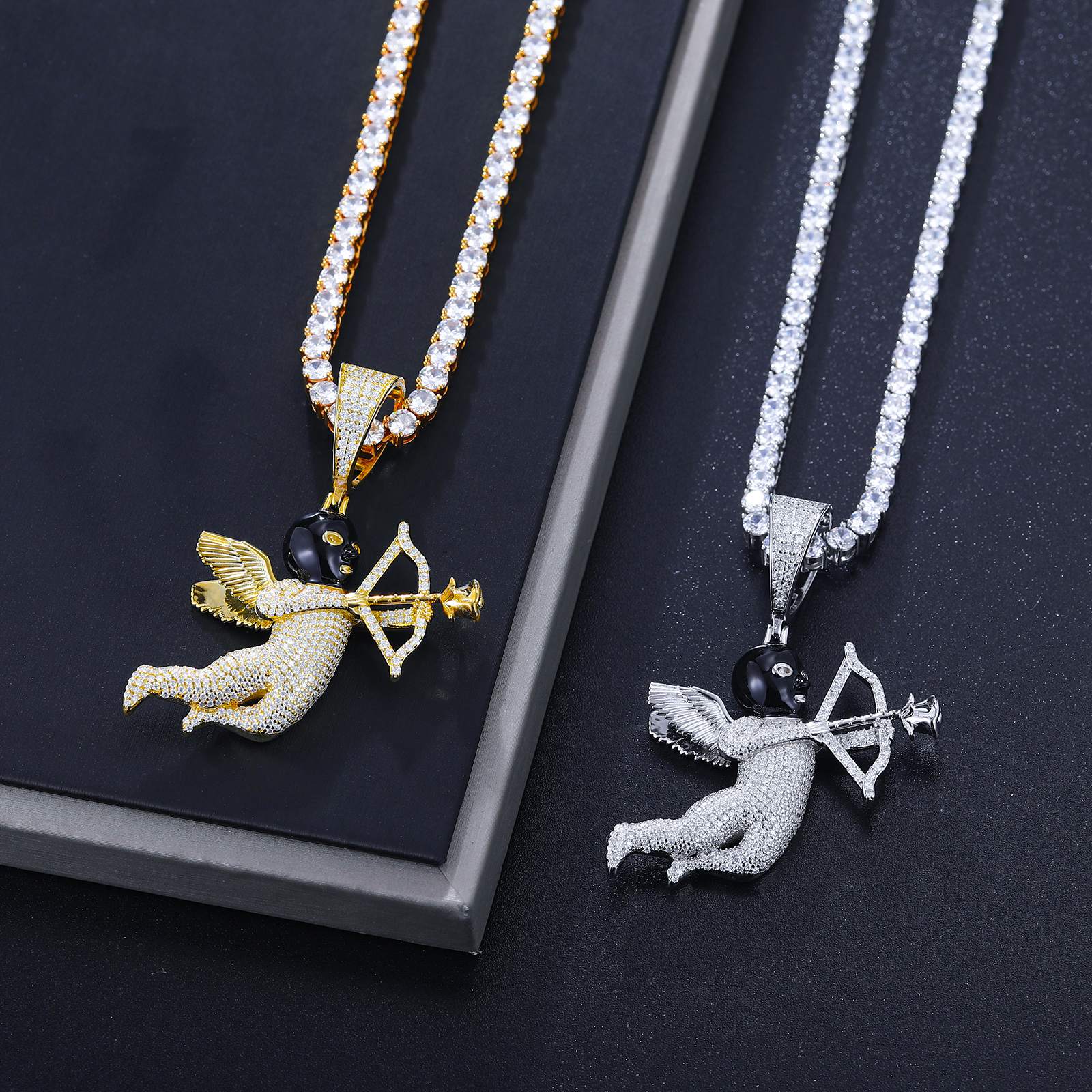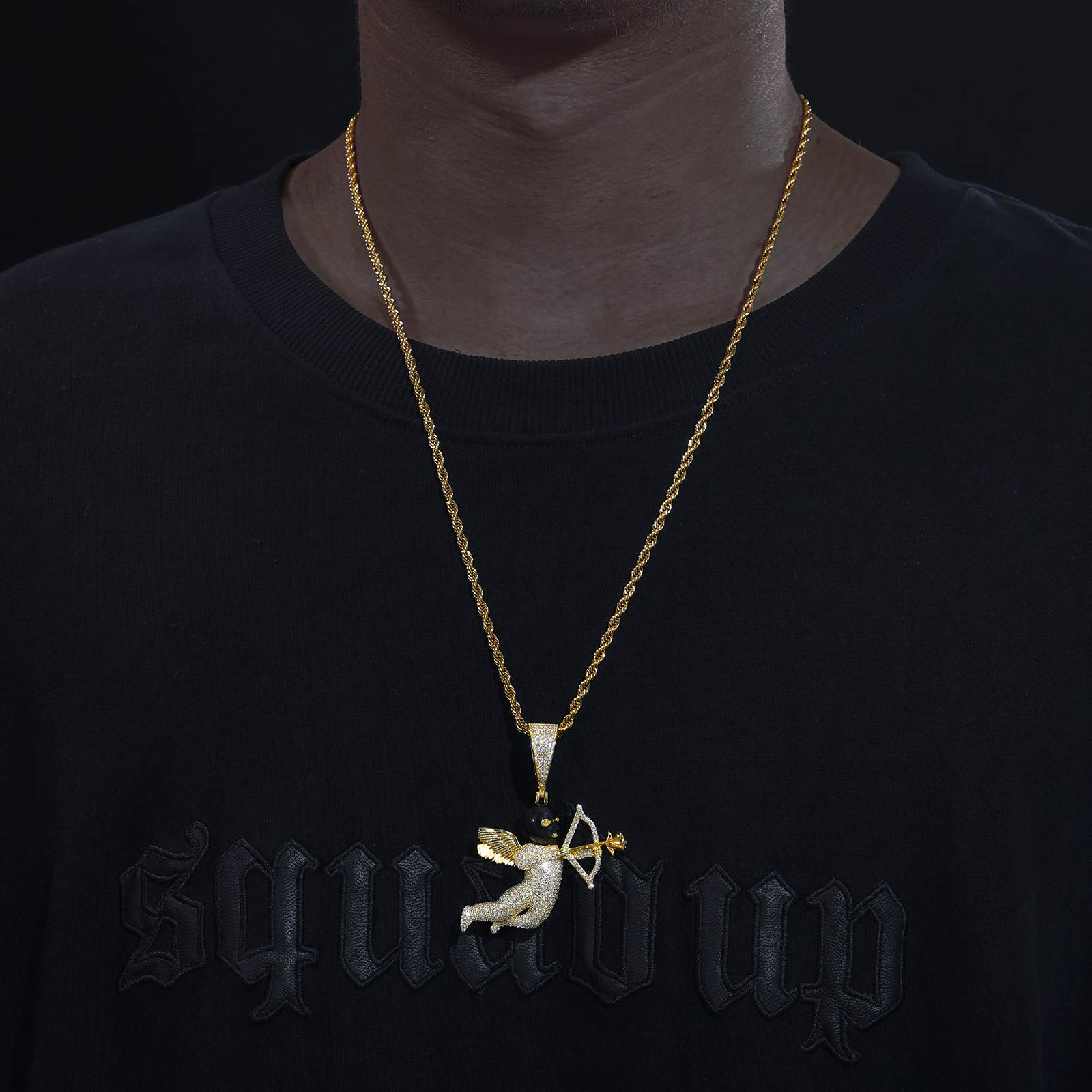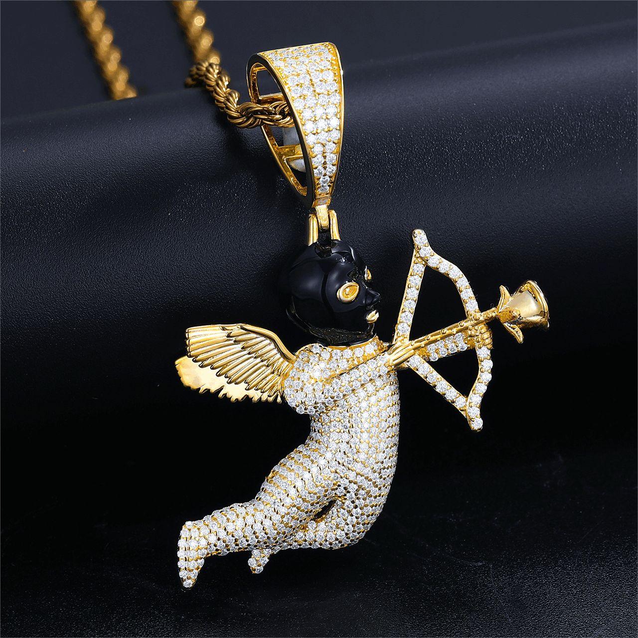 S925 Moissanite Angel Cupid Pendant With Black Masked Arrow Of Eros
