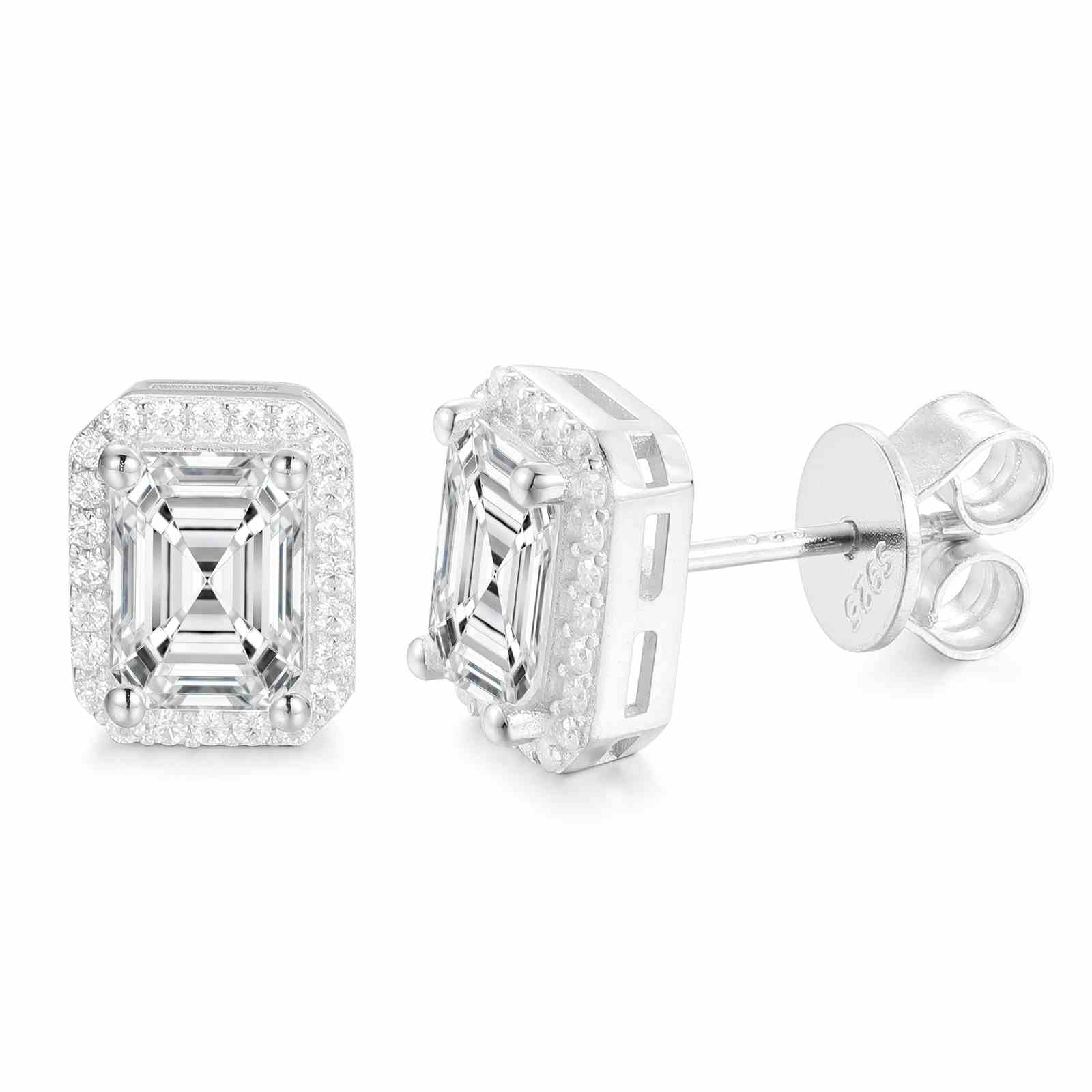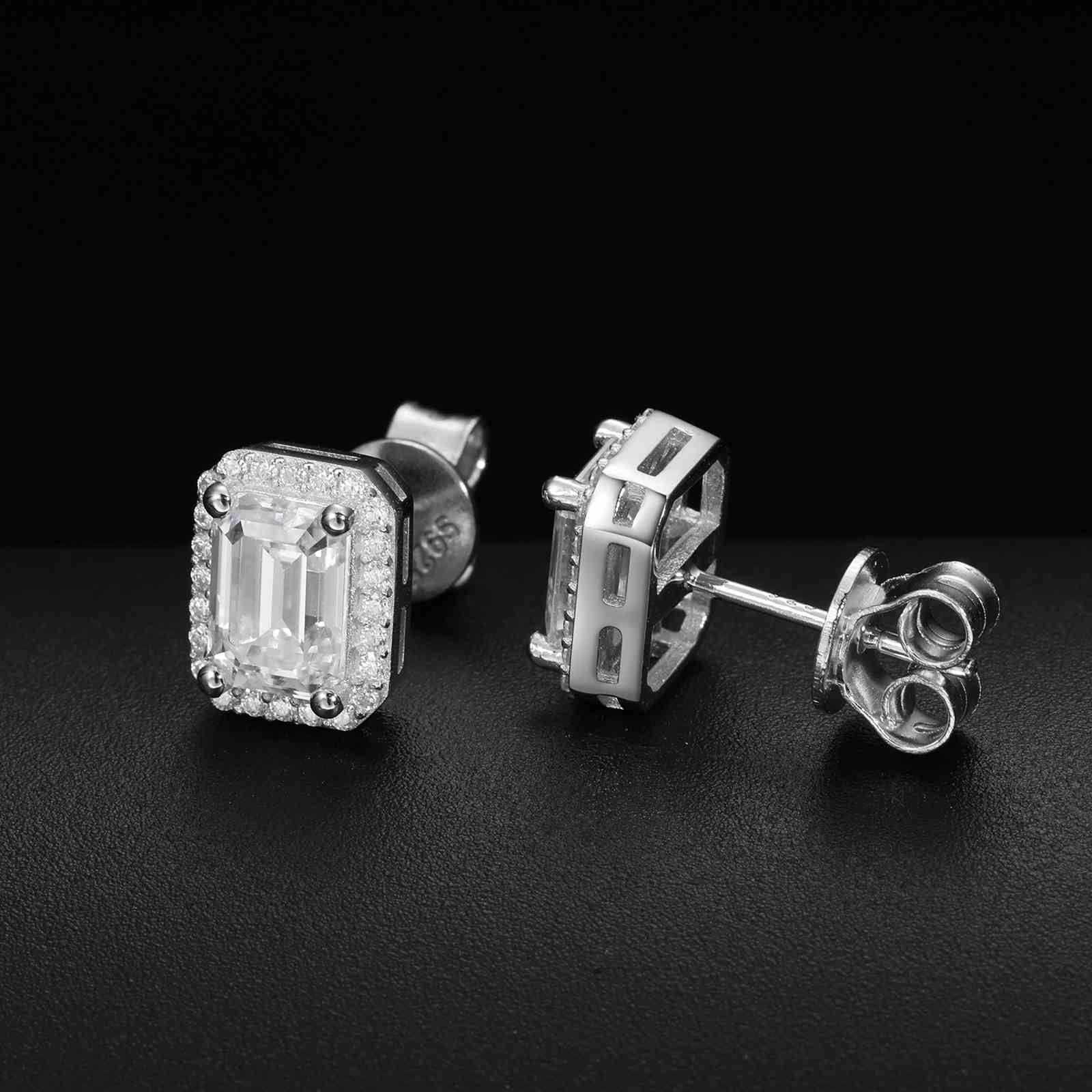 S925 Moissanite Baguette Square Stud Earrings