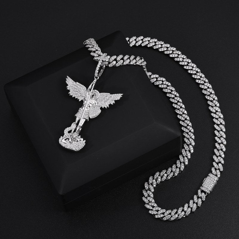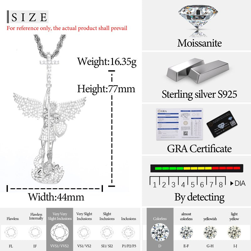 S925 Moissanite Chastisement Angel Pendant With Cross Bail