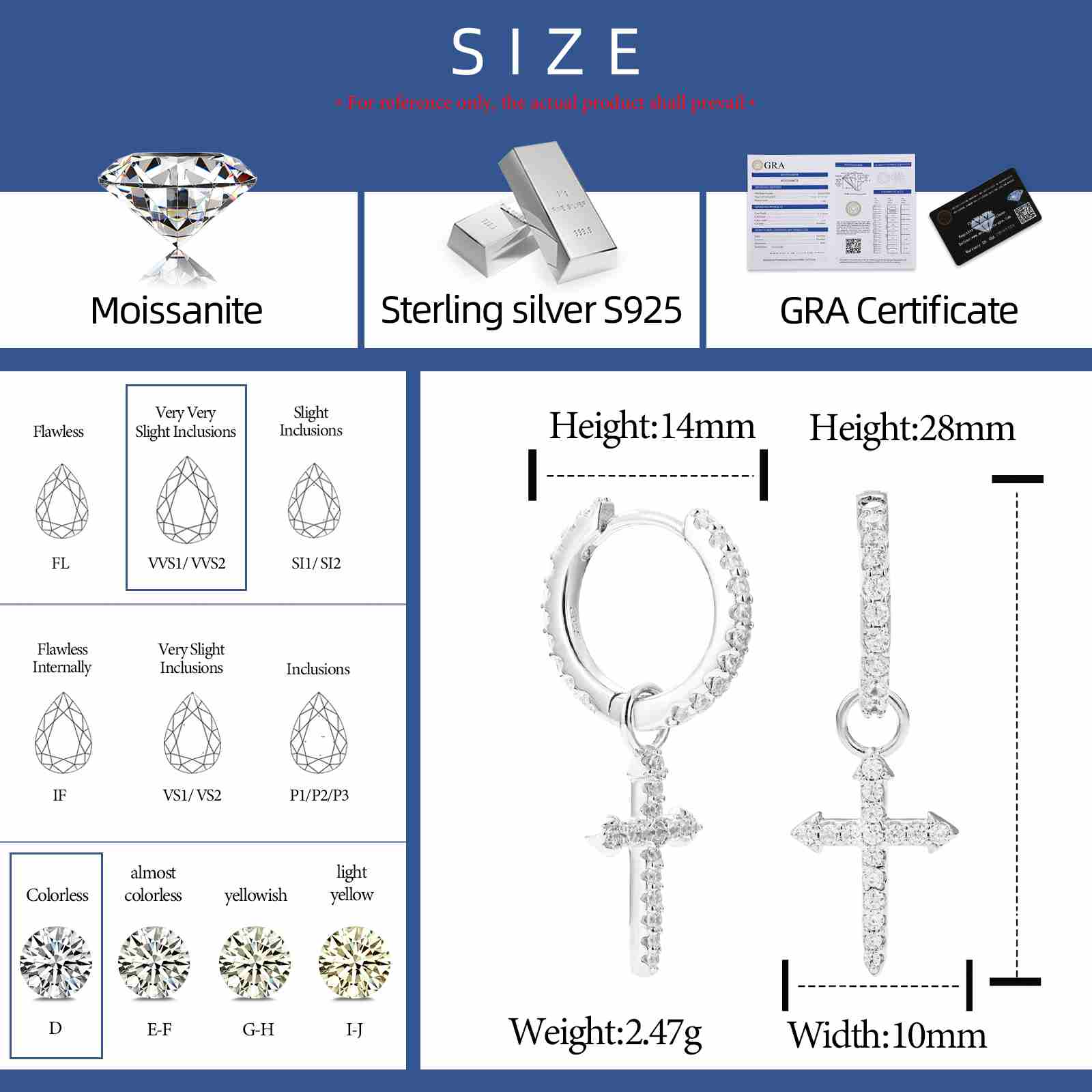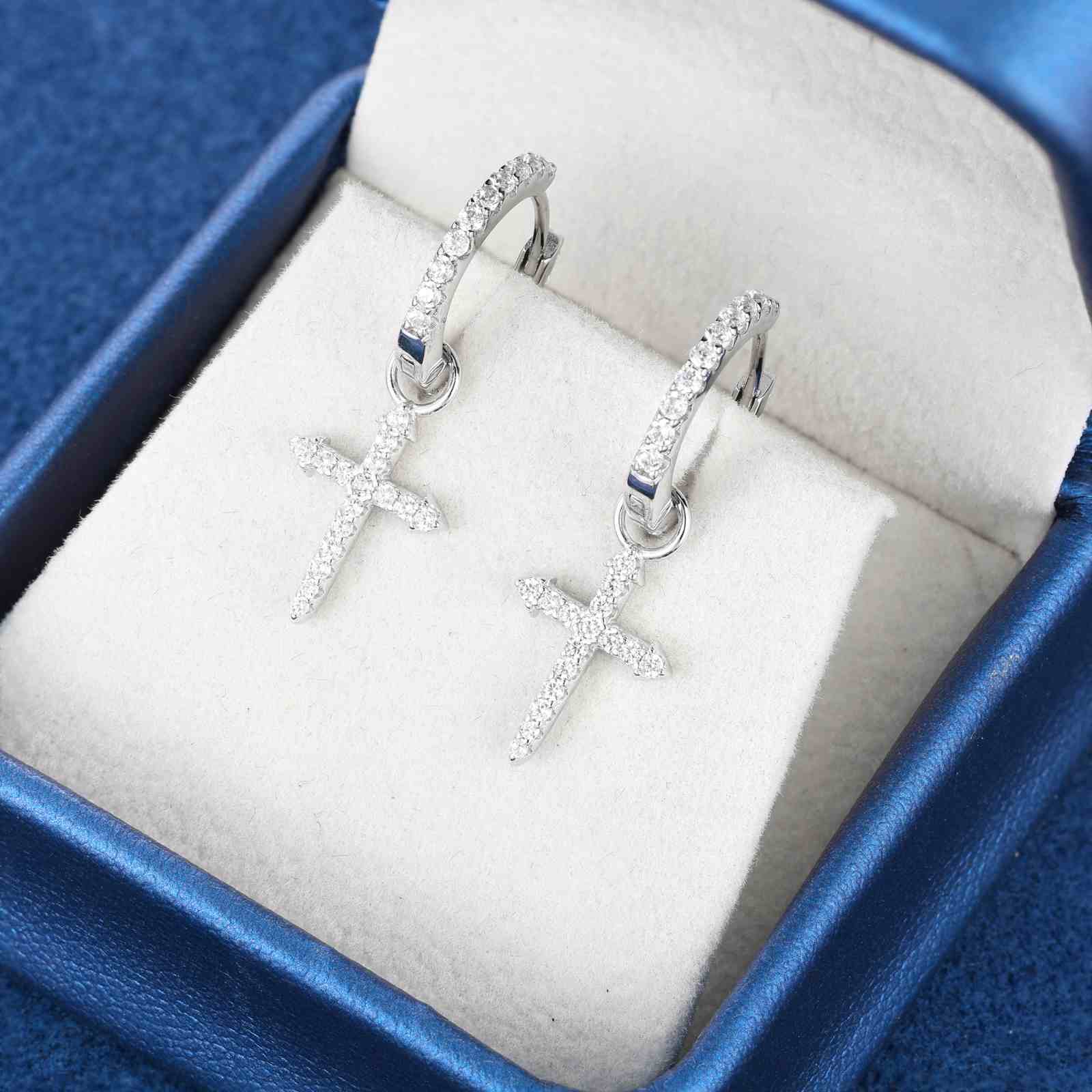 S925 Moissanite Cross Drop Earrings