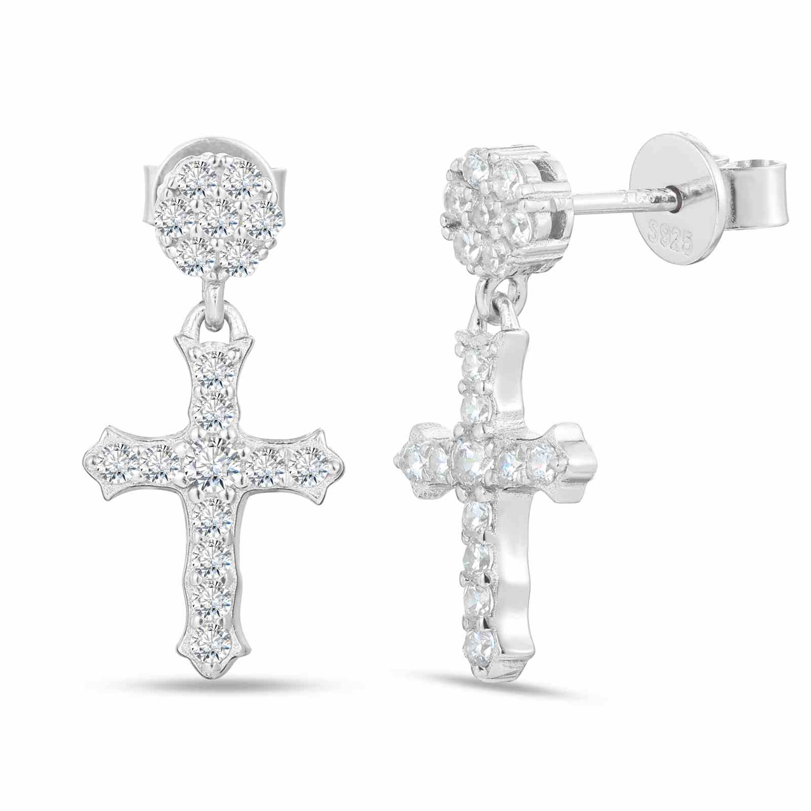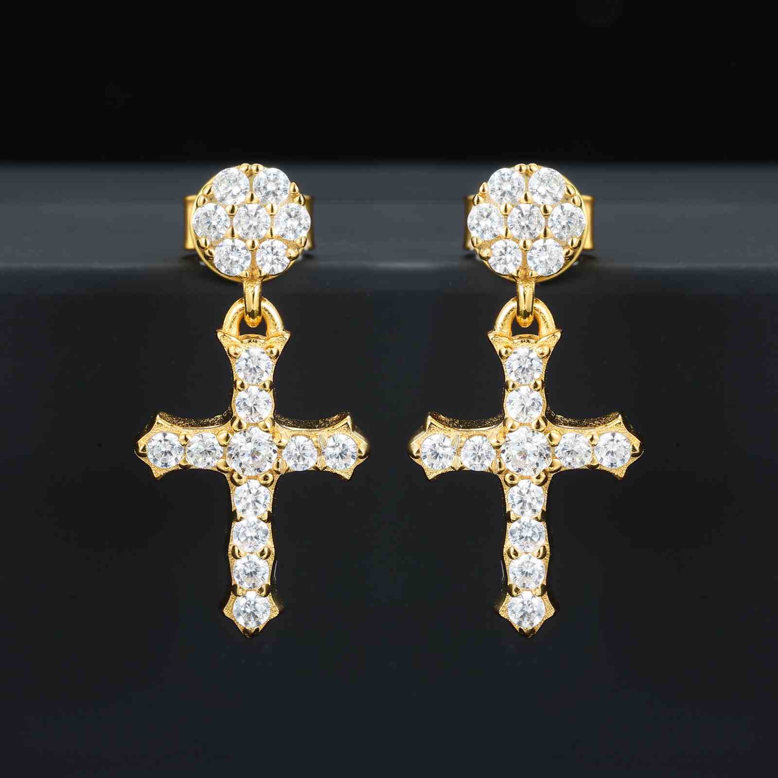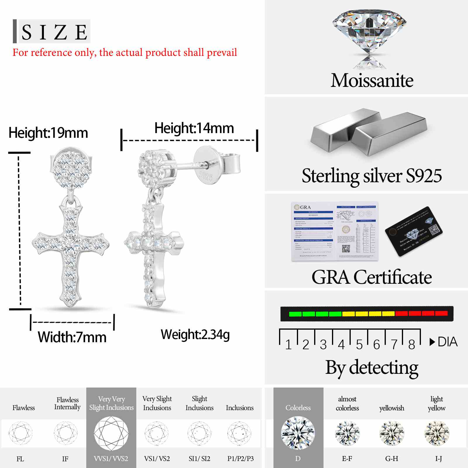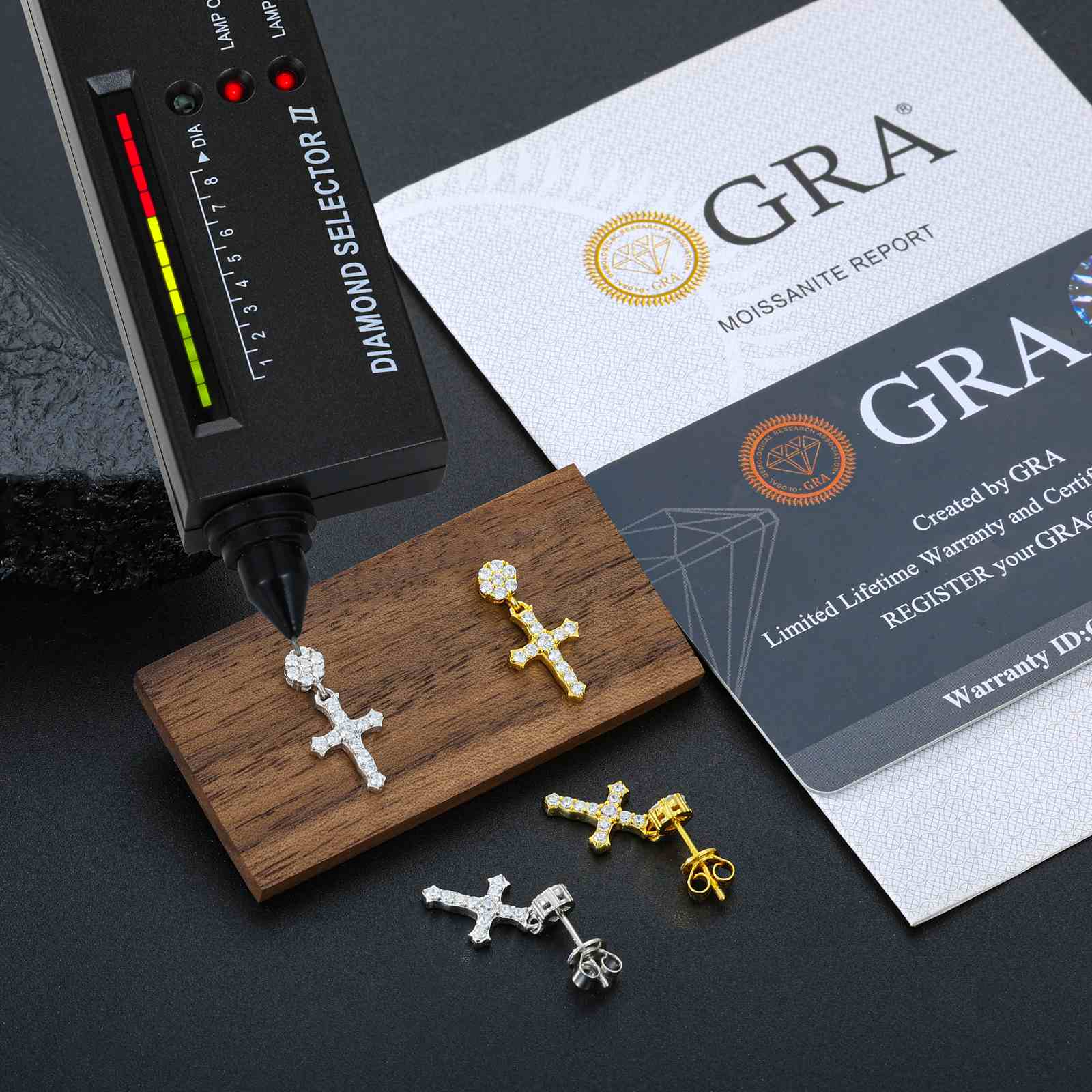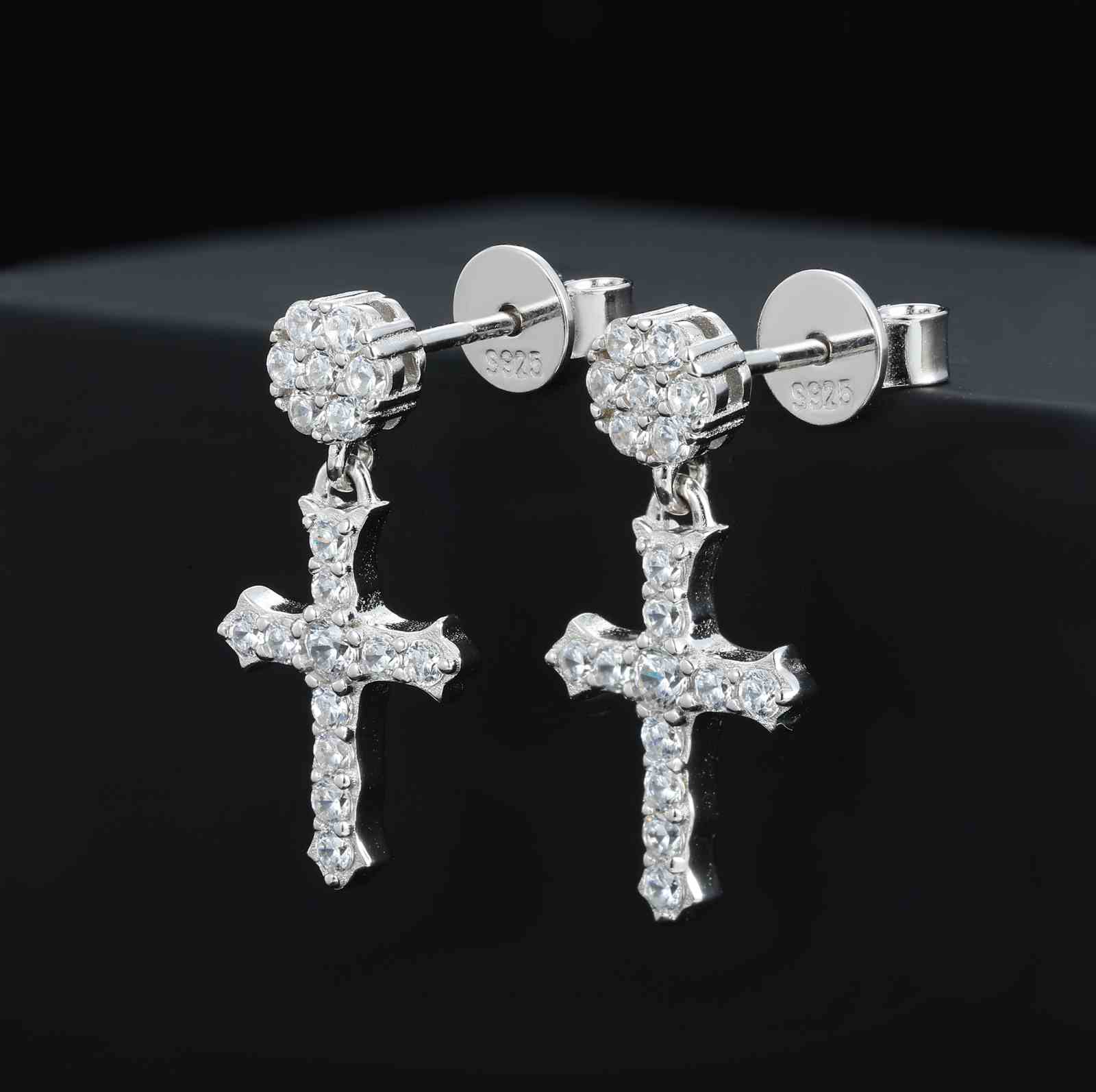S925 Moissanite Cross Drop Earrings With Flower Stud
